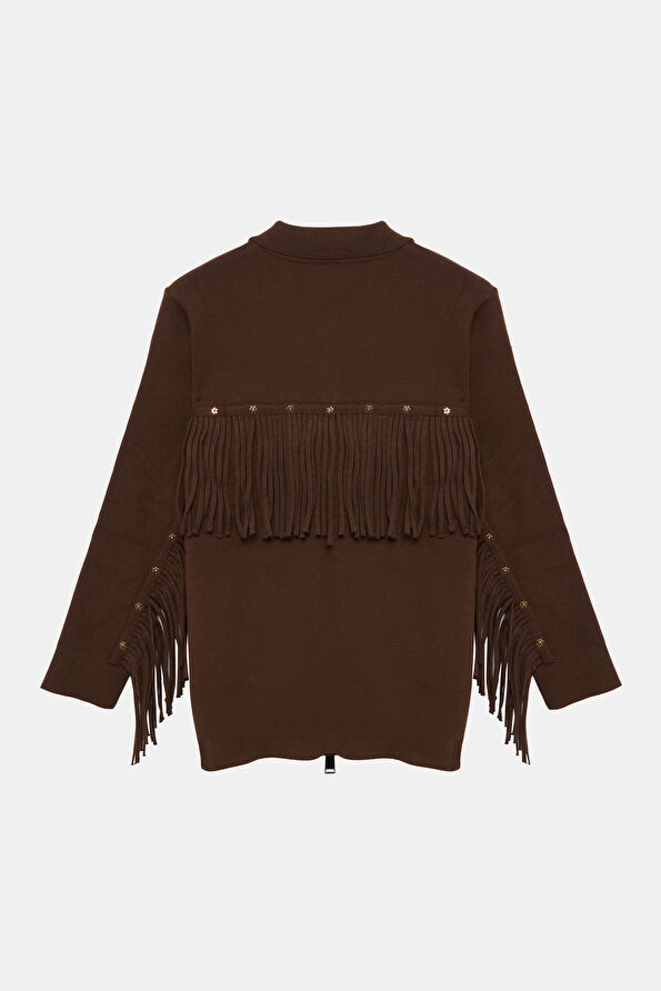 Kahve Fermuarlı Viskoz/Polyamid Ceket