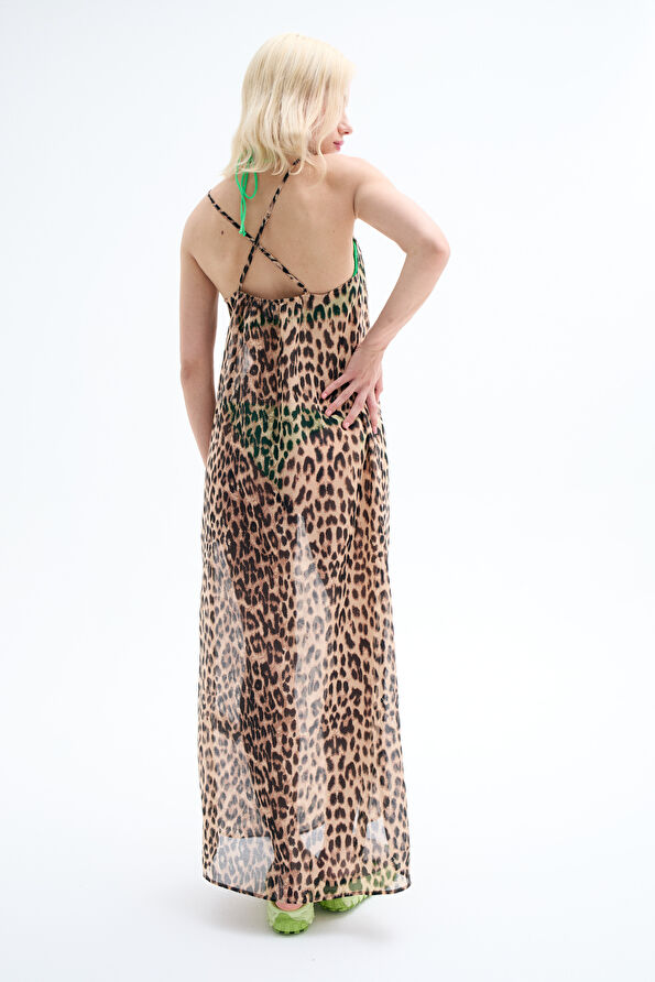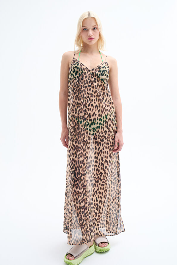 Kahve Desenli Maxi Elbise