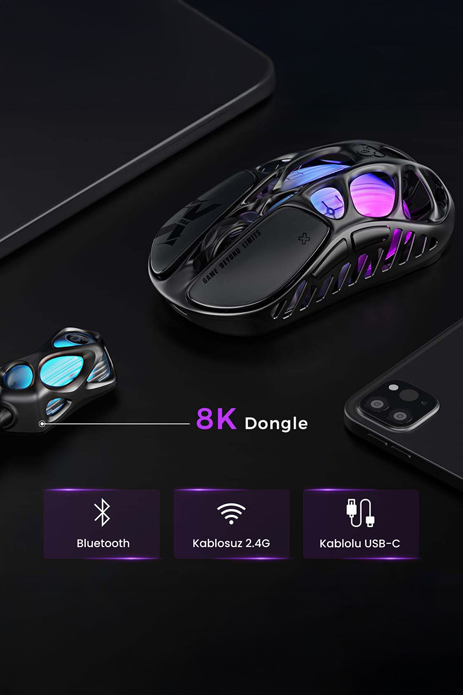 Mercury XPro RGB 32K DPI Optical Gaming Mouse +8K Dongle