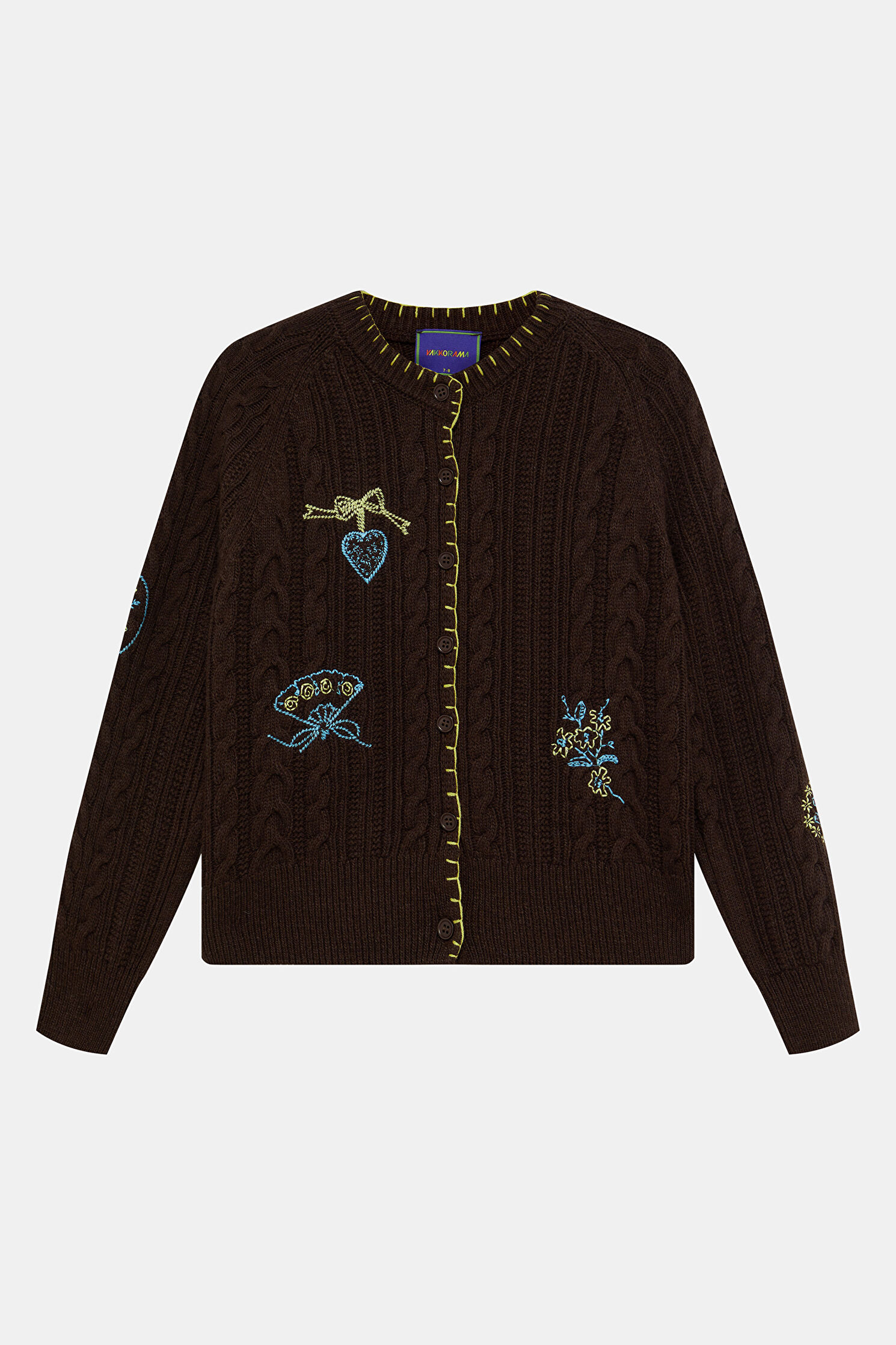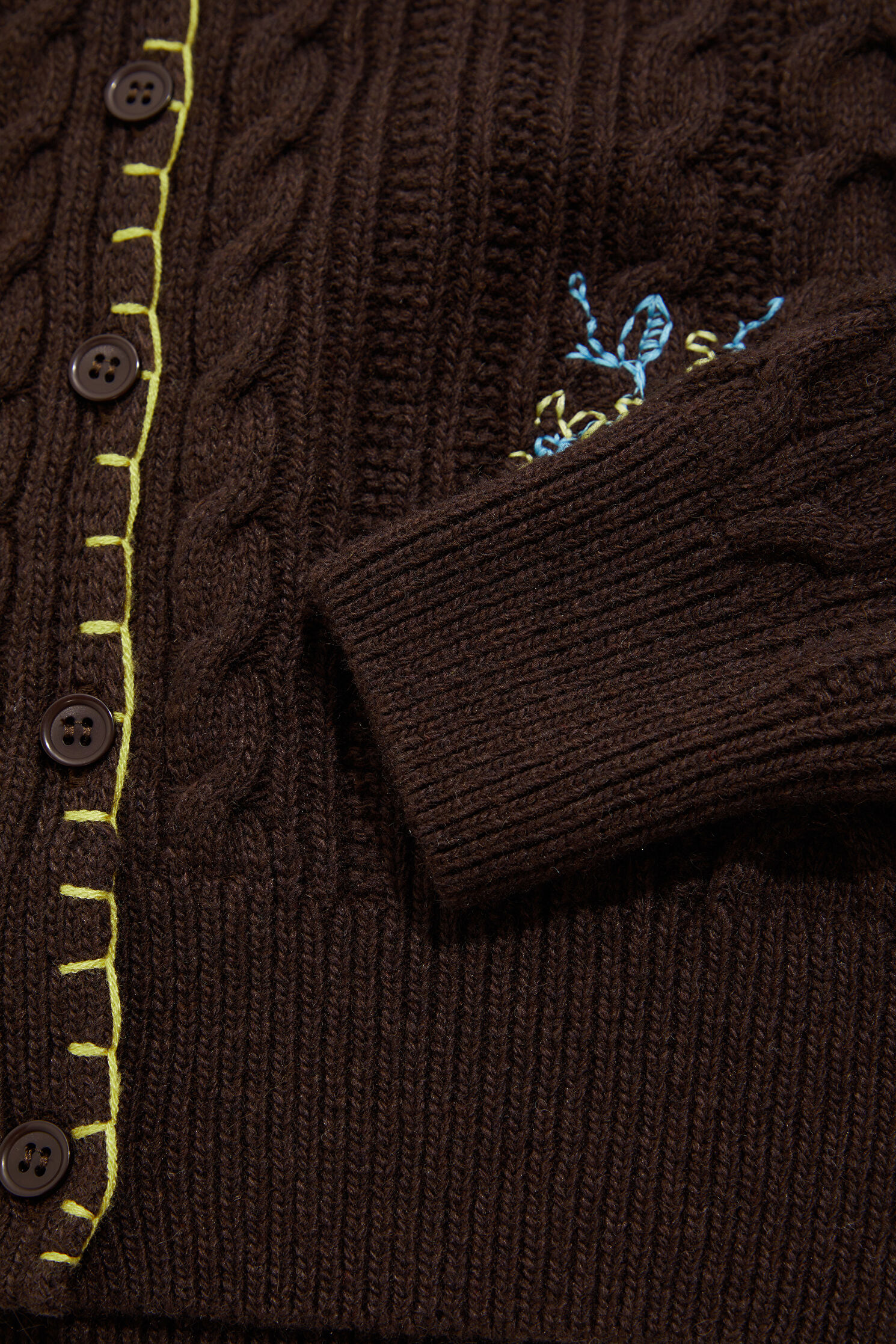 Coffee Embroidered Knit Cardigan