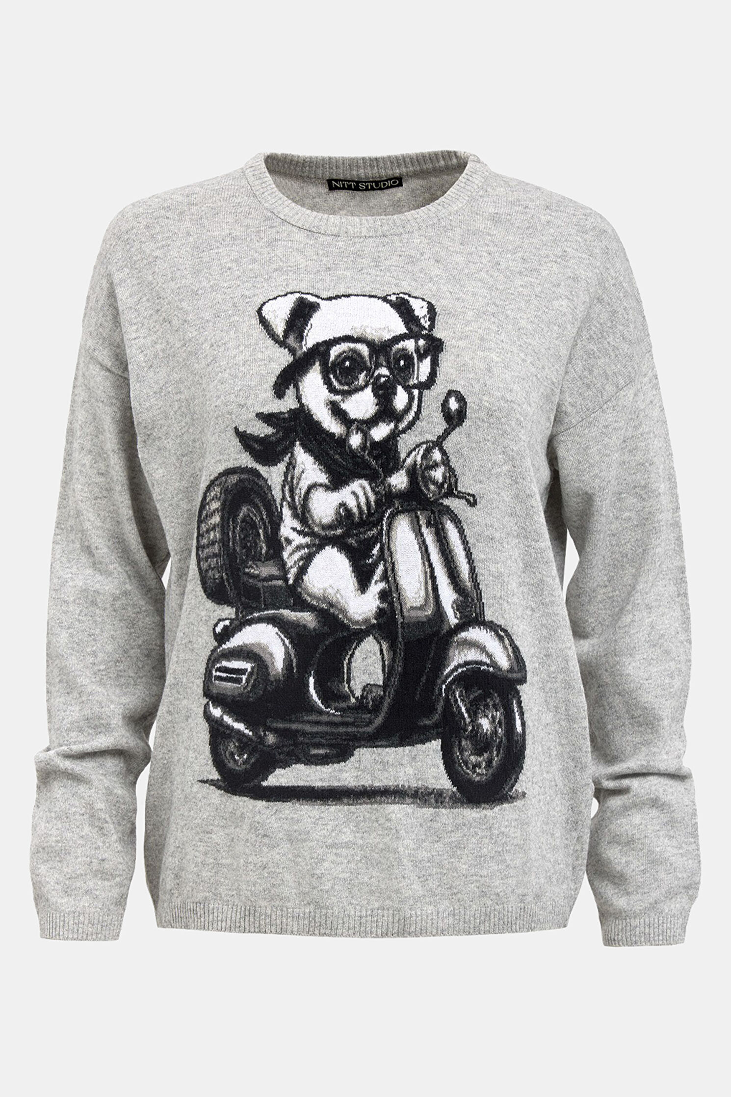 Grey Animal Print Wool/Cashmere Sweater