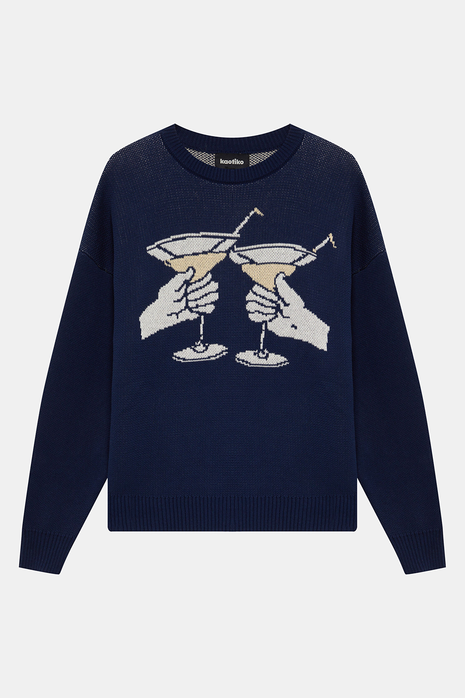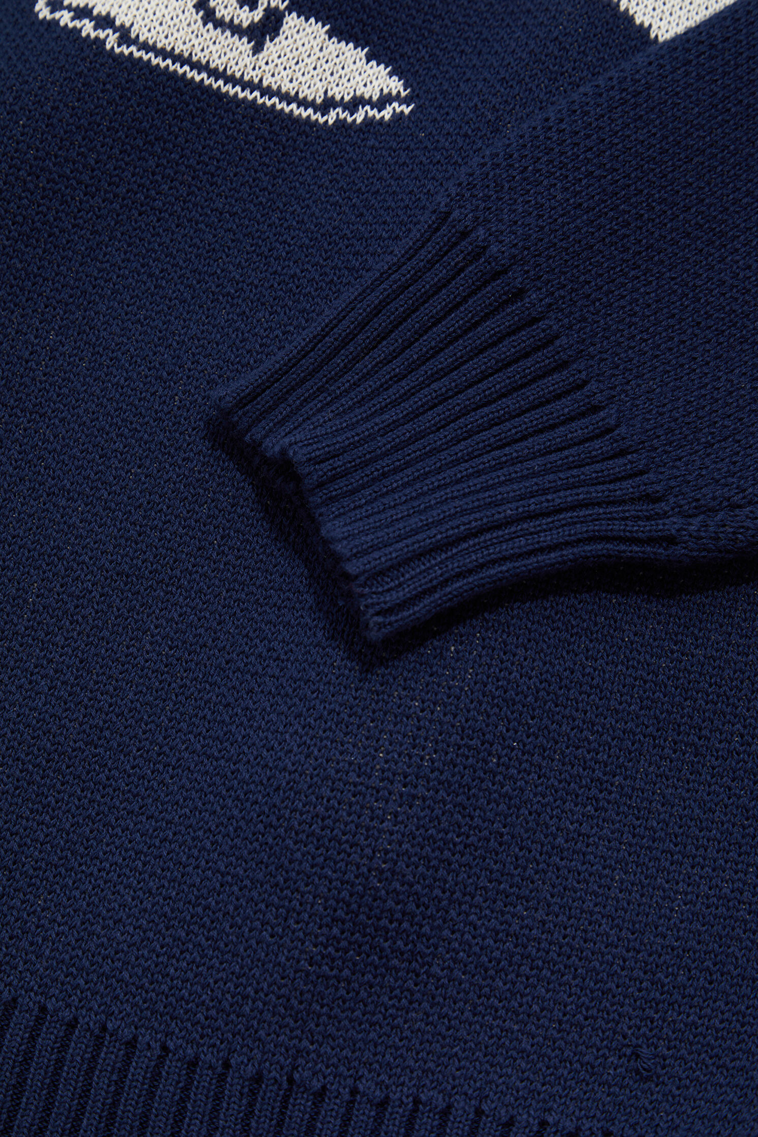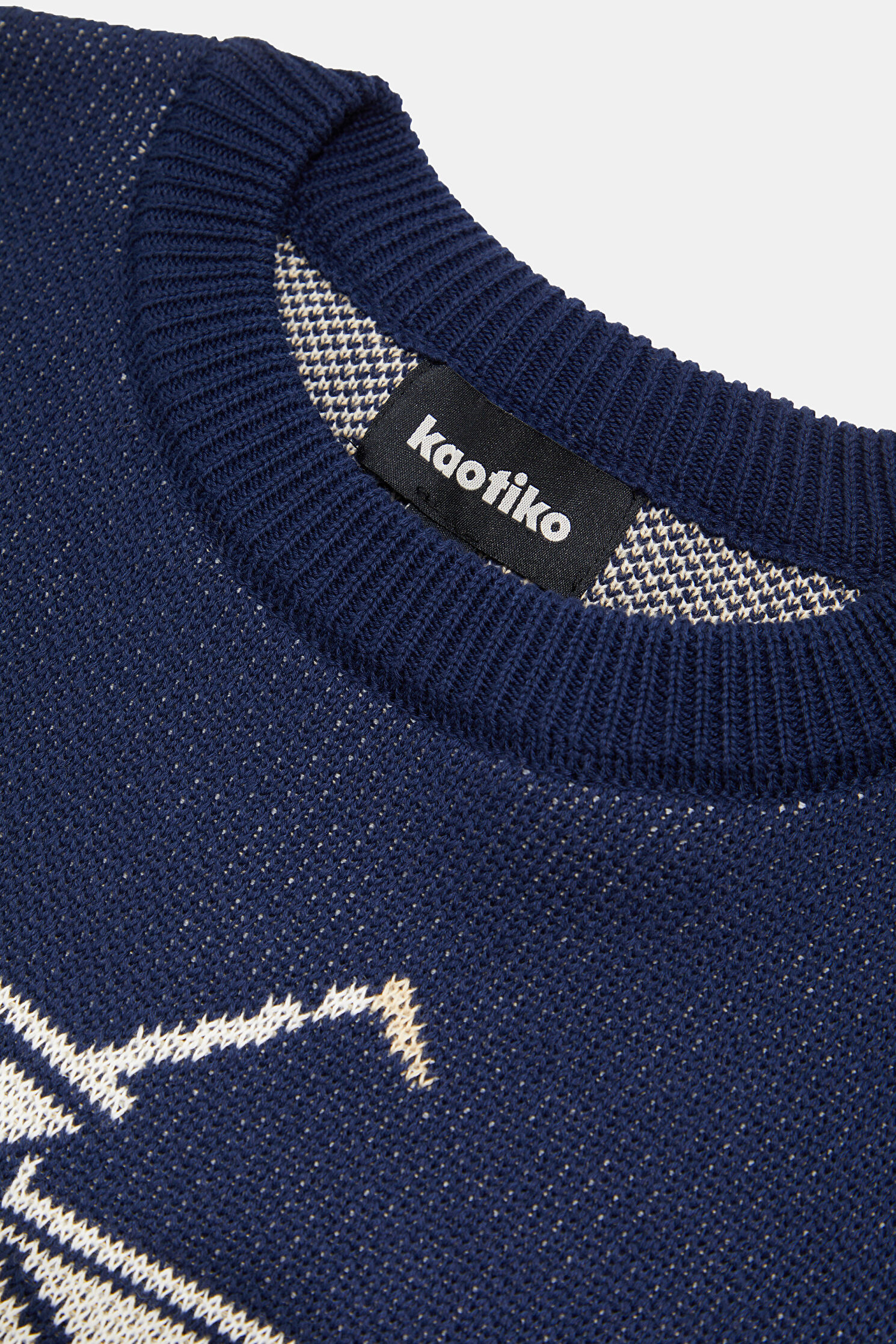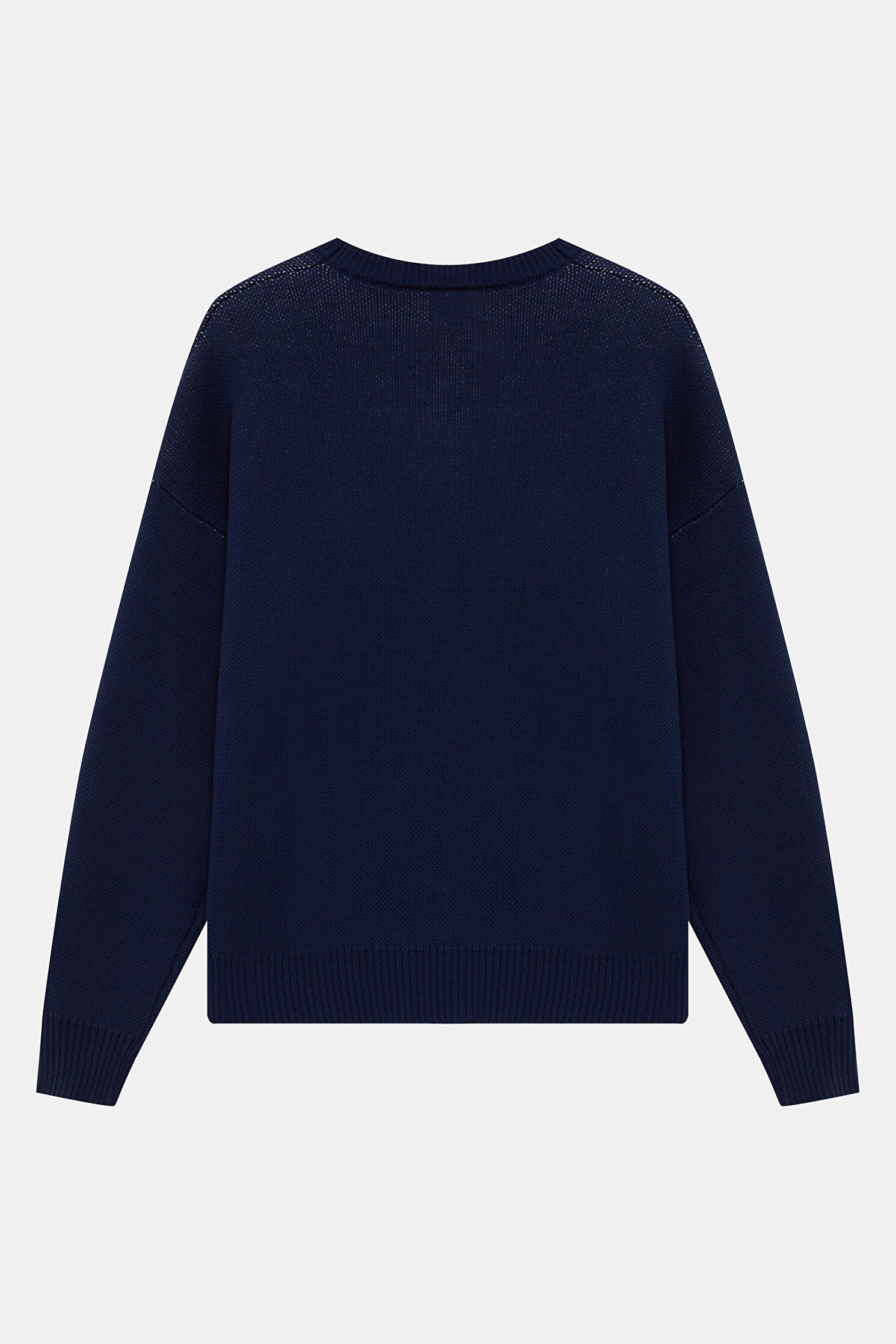 Navy Patterned Organic Cotton Knit Sweater