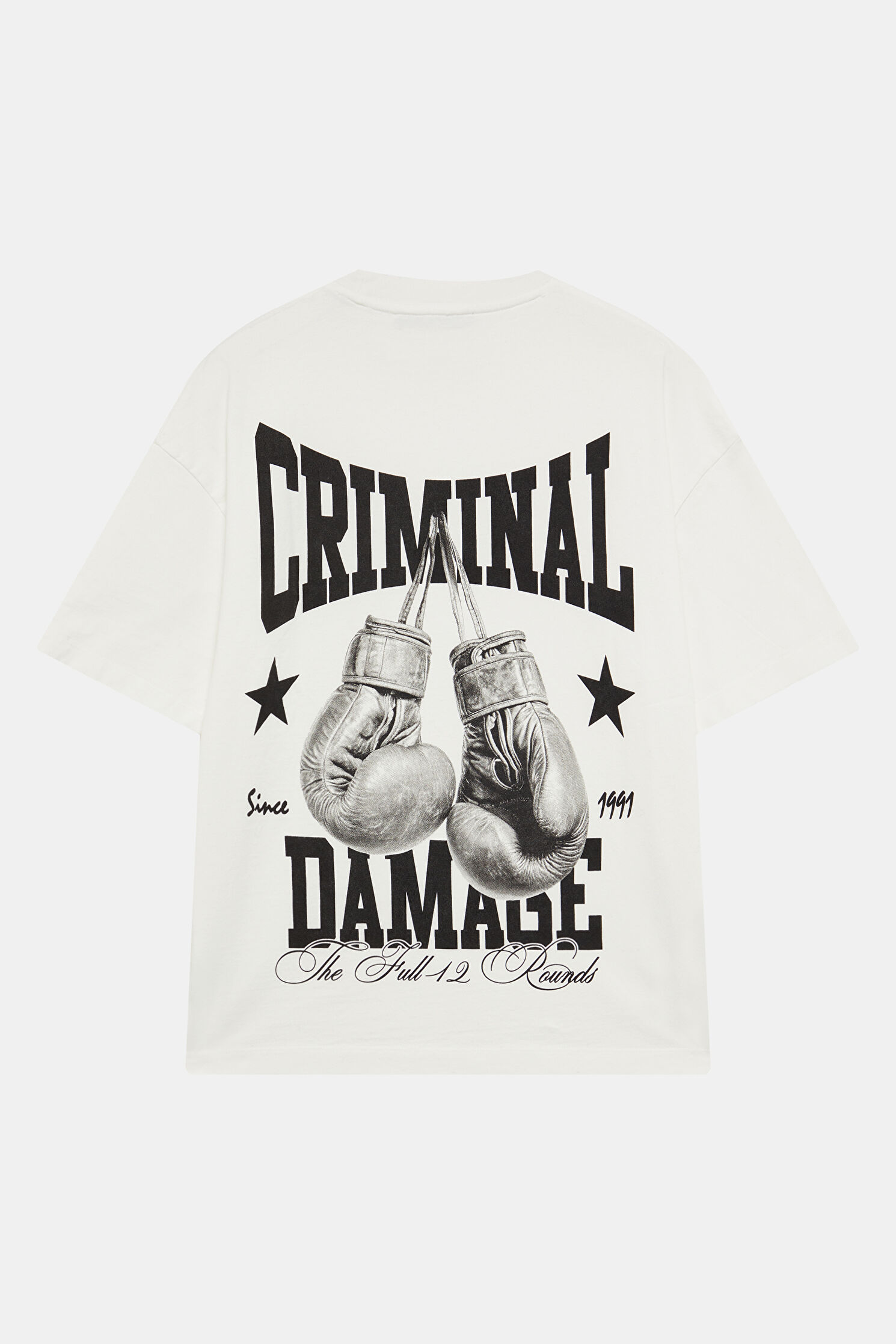 Oversize White Crew Neck Printed T-Shirt