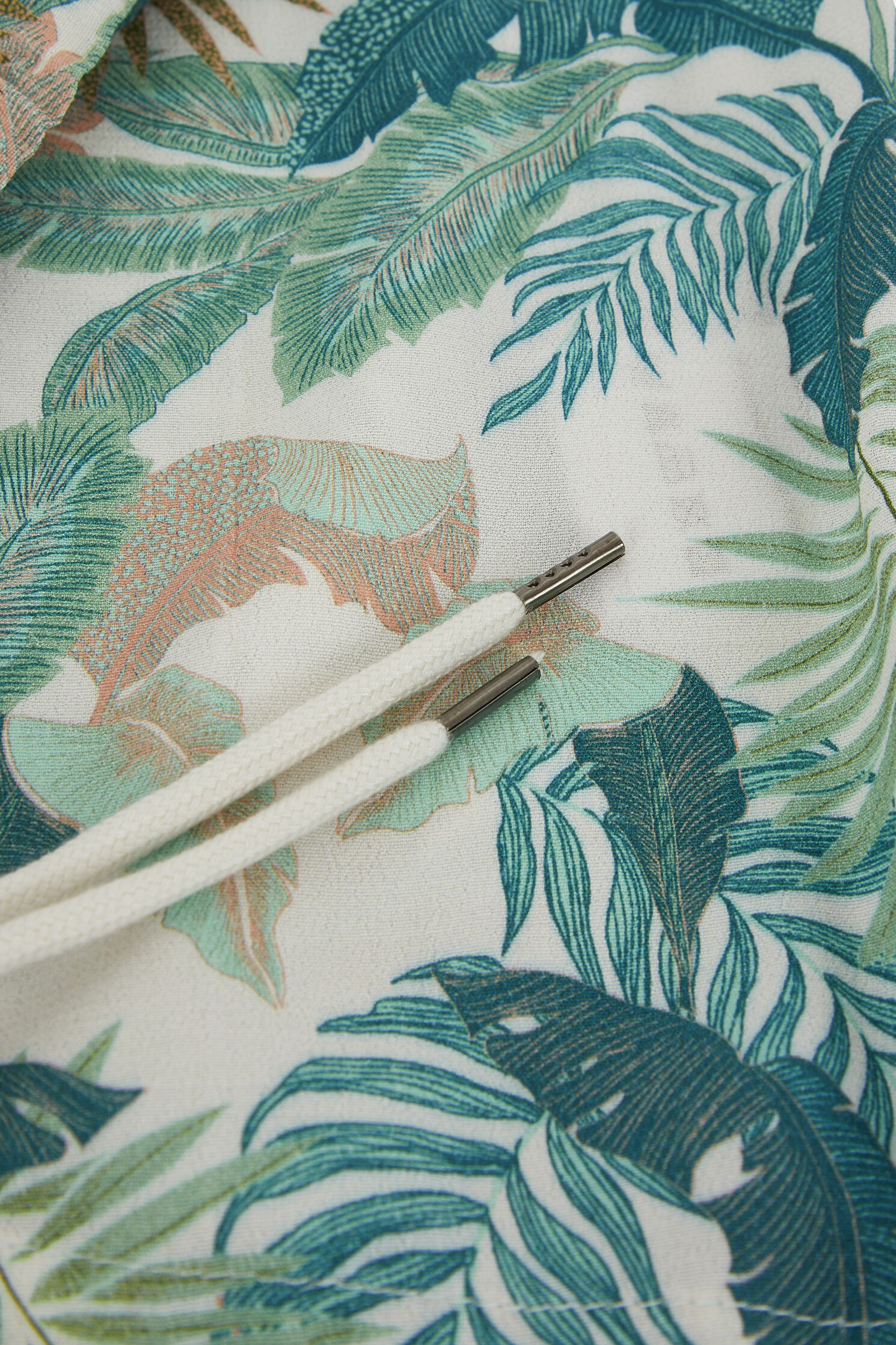 Renkli yaprak desenleri ile dikkat çeken Anna Blue gömlek, klasik yakalı ve kısa kolludur. Bu model, tam boy düğme kapamalıdır.
