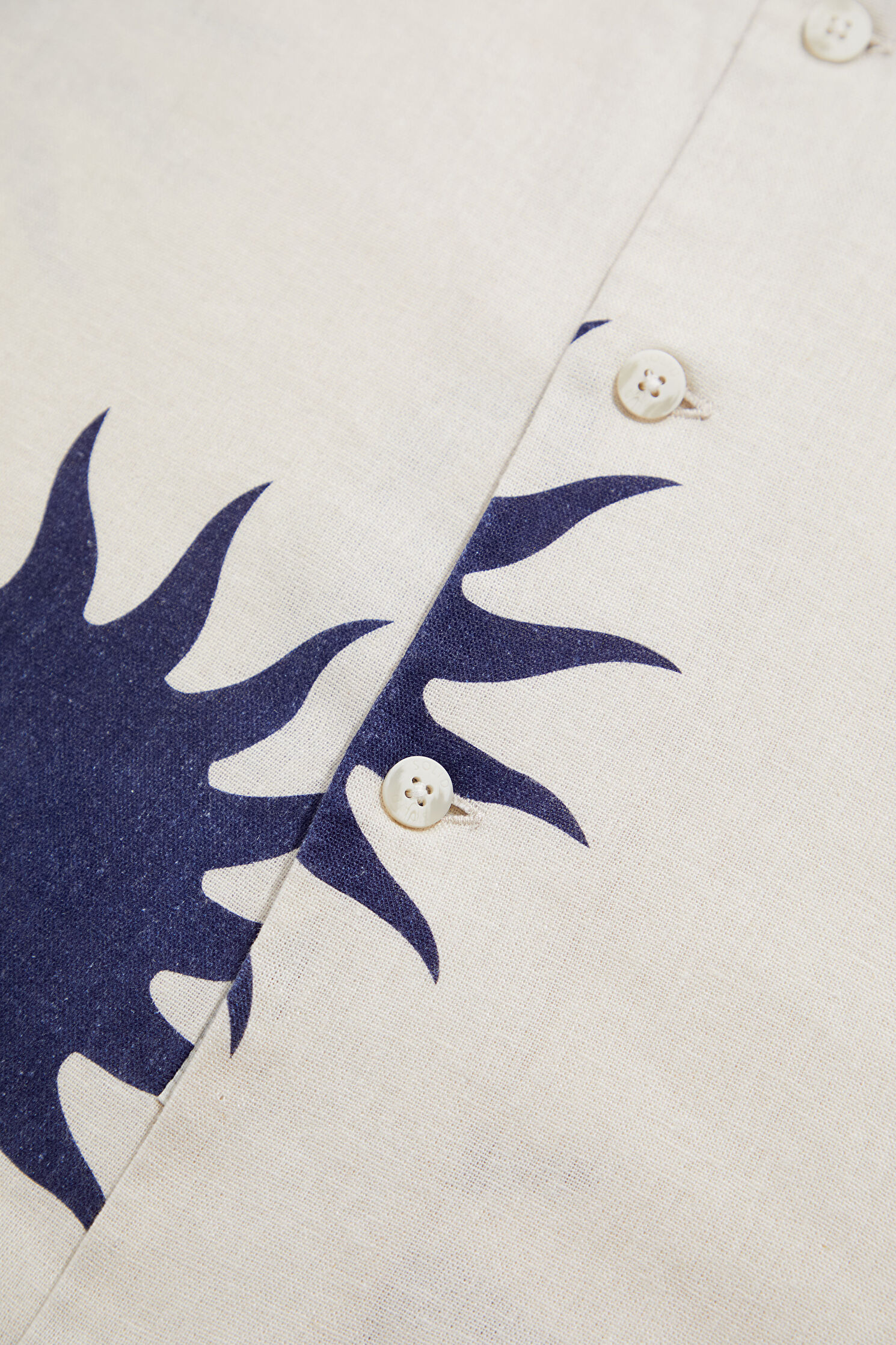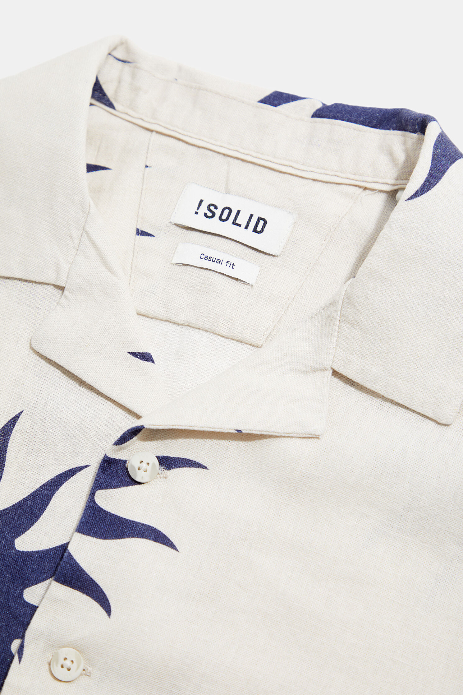 Ekru Keten Baskılı Resort Yaka Gömlek