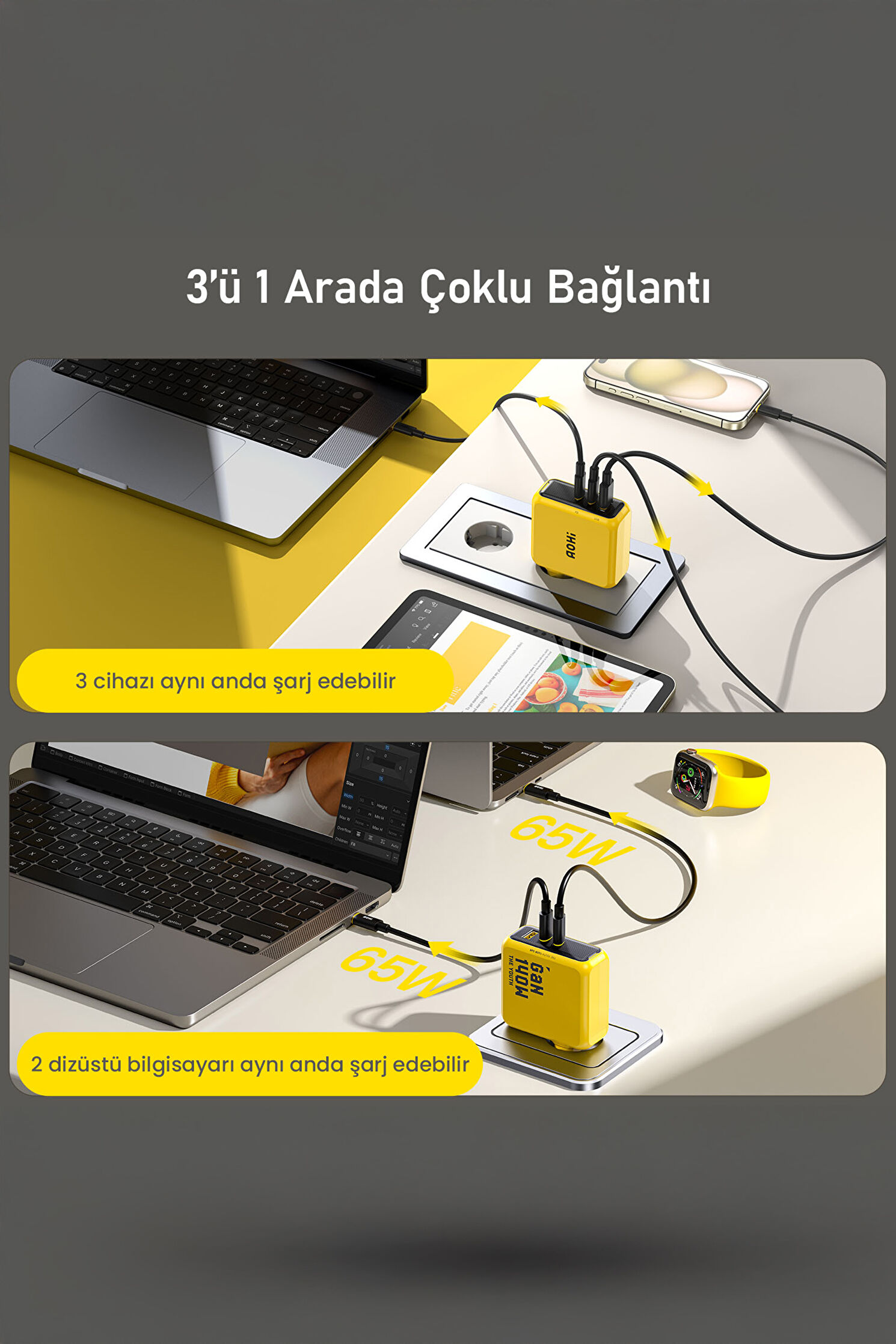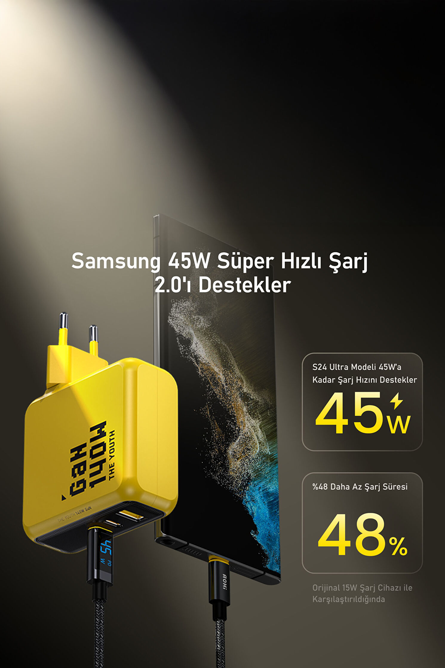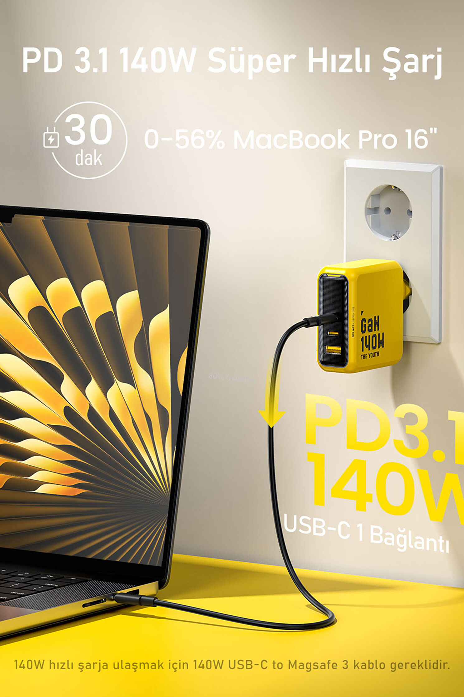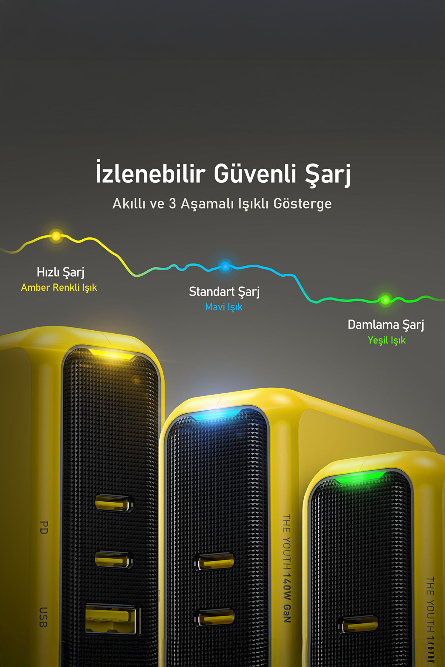 Youth 3 Portlu 140W GaN Hızlı Şarj Adaptörü