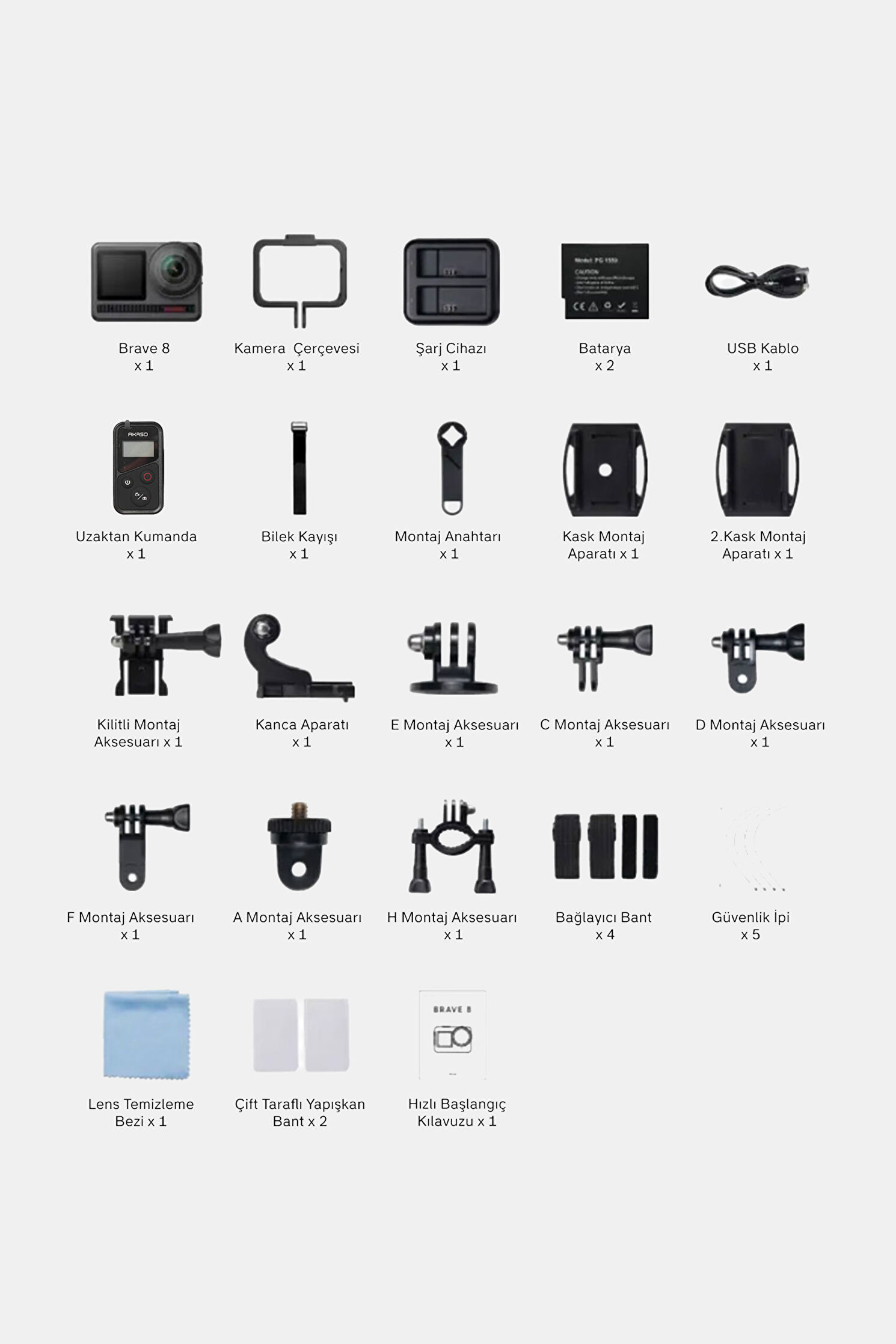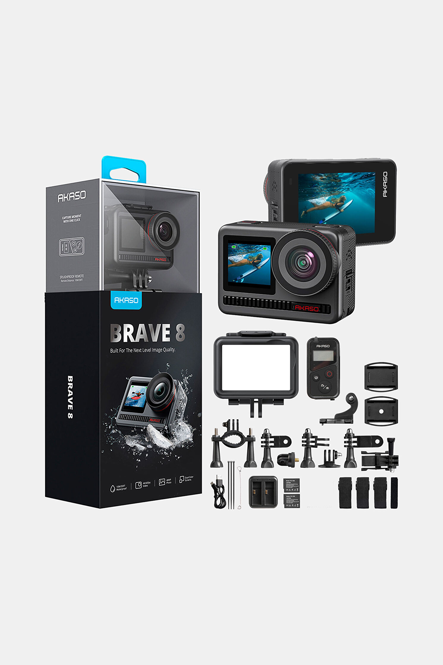 Brave 8 4K/60FPS 48MP Wi-Fi Dual Screen Aksiyon Kamera ve Aksesuar Seti