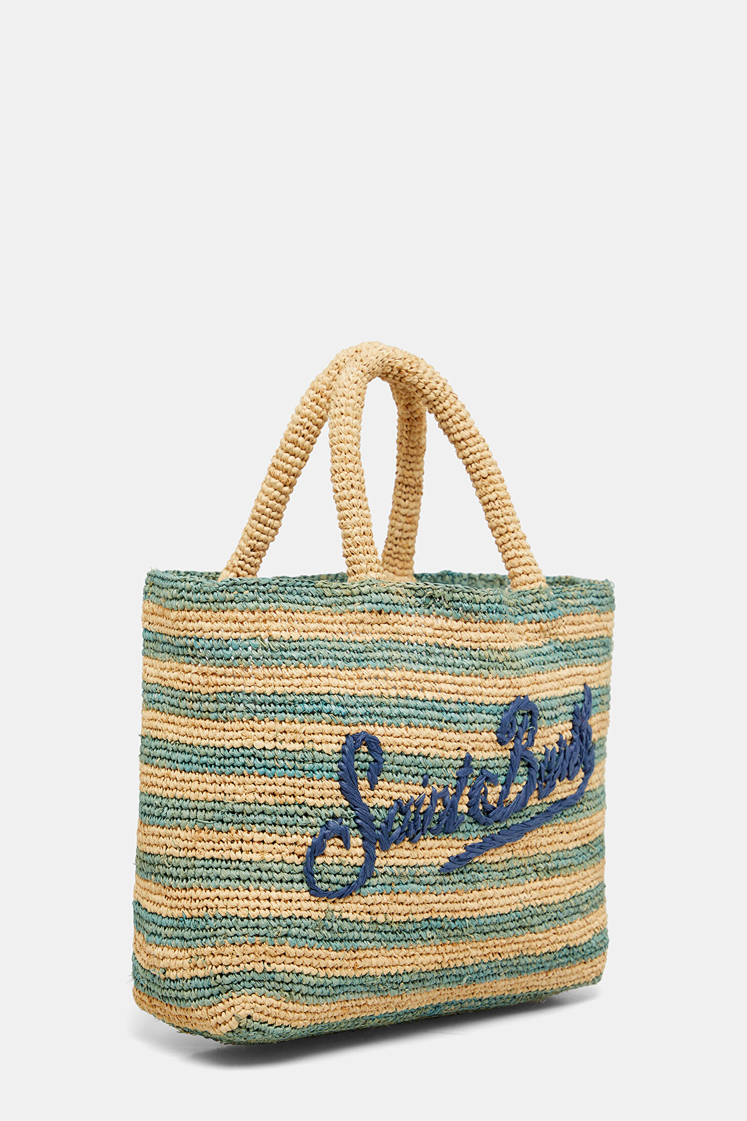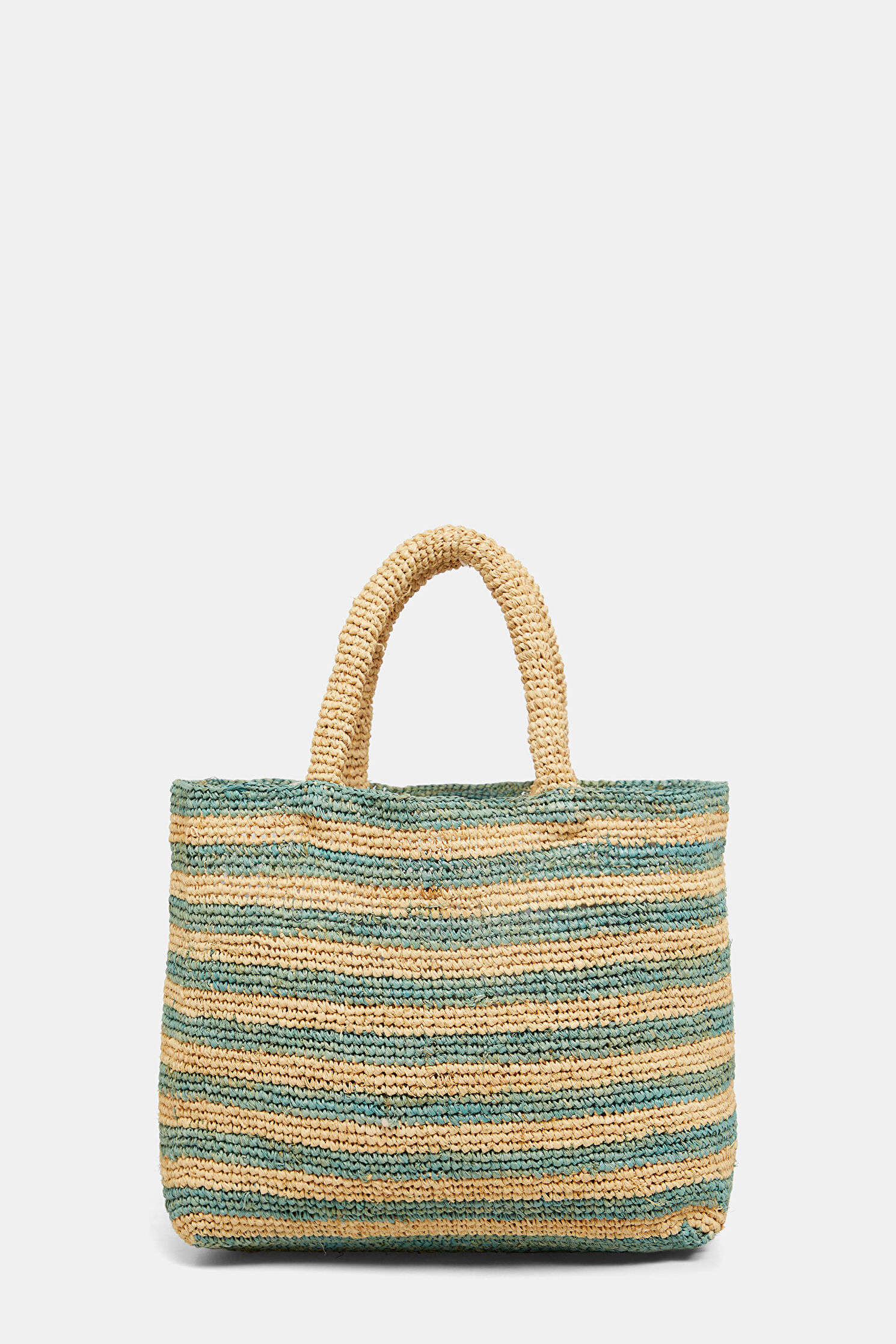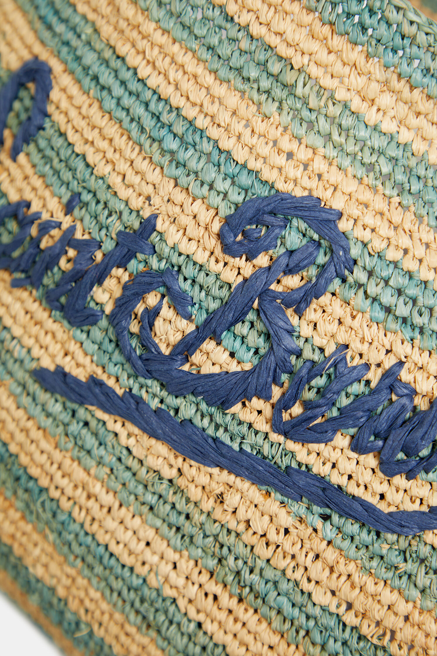 Raffia Beach Mid Turkuaz Desenli Yün Çanta