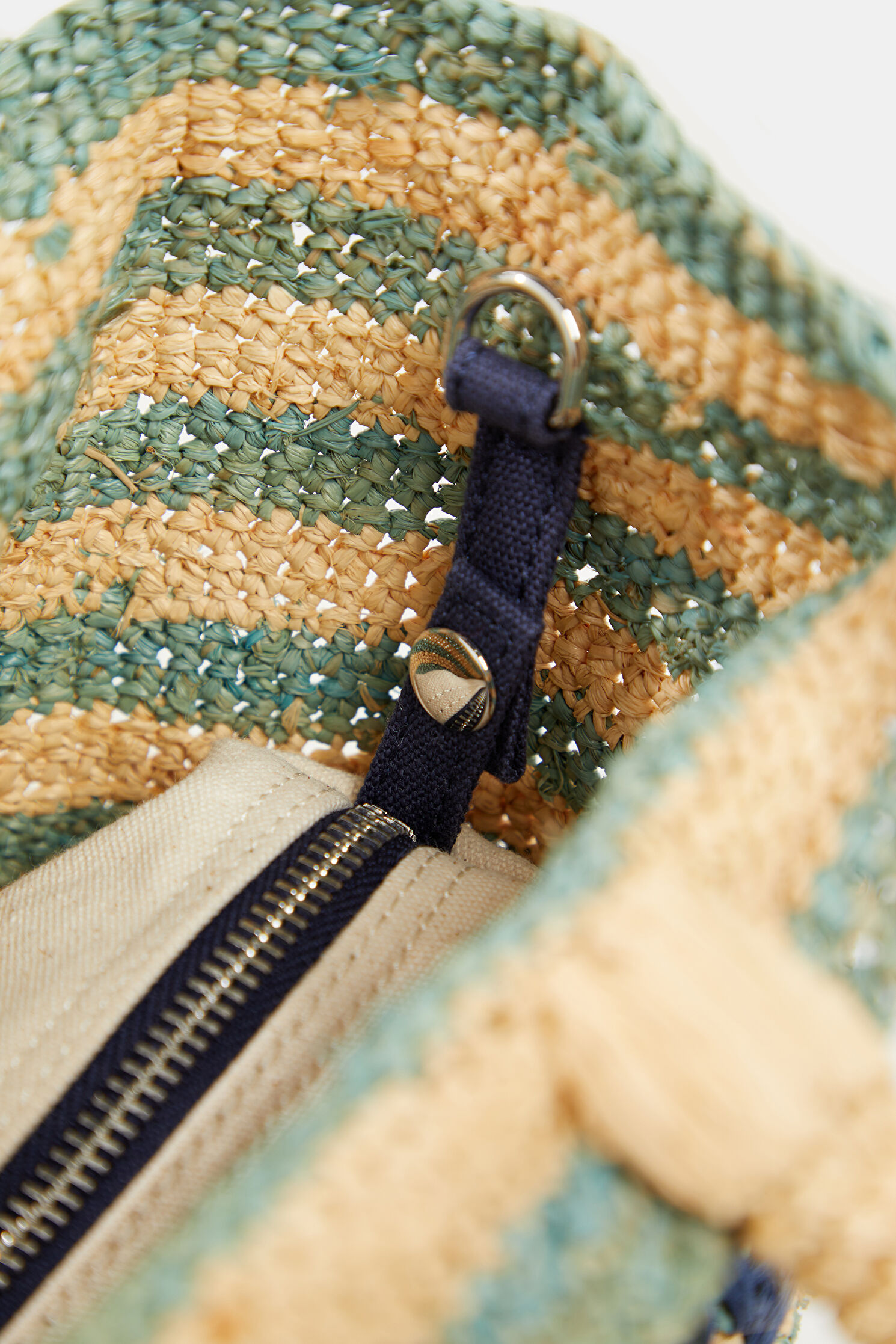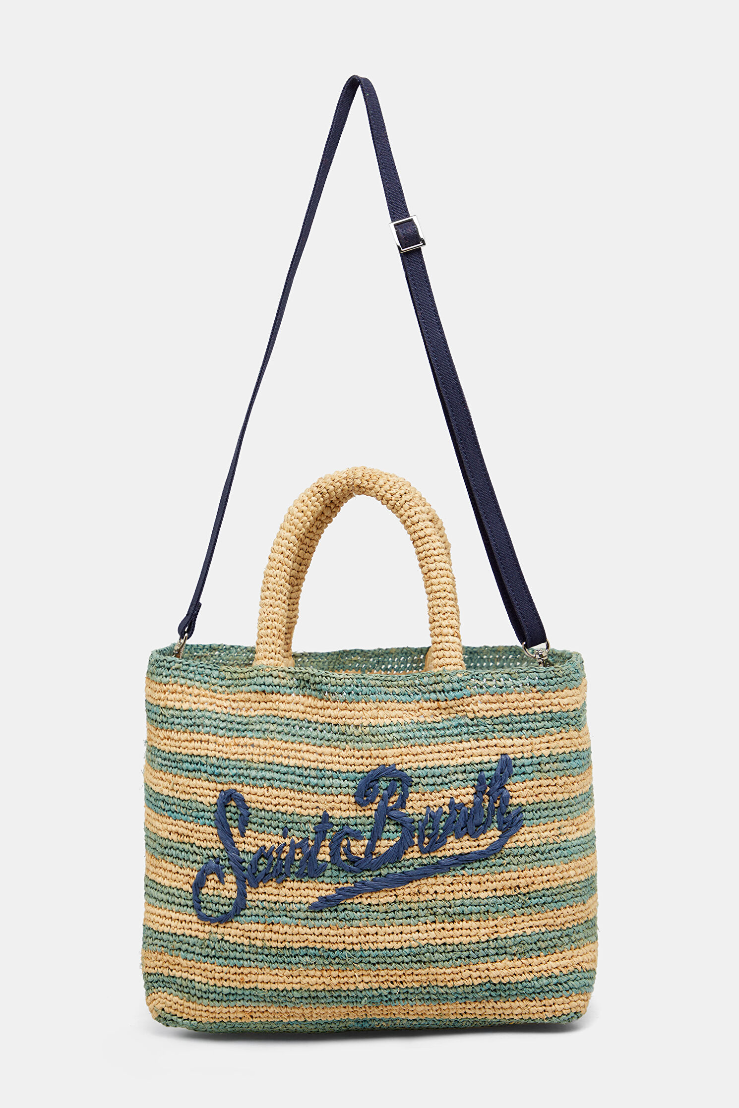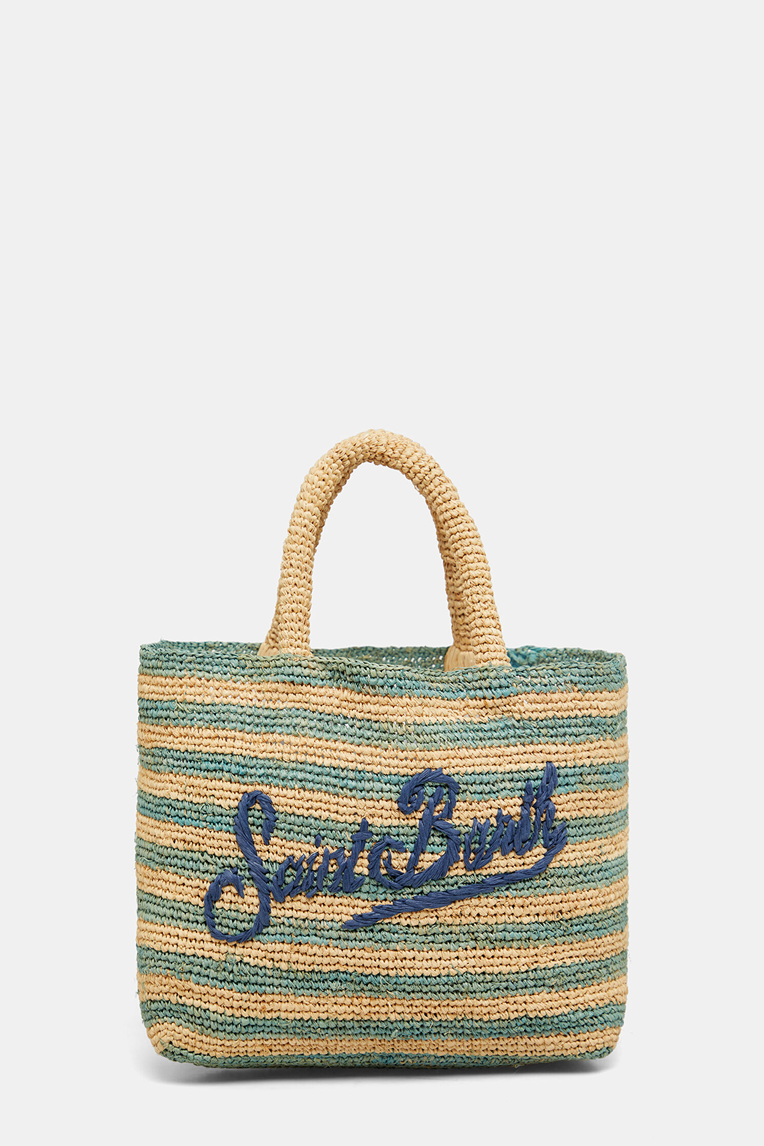 Raffia Beach Mid Turkuaz Desenli Yün Çanta