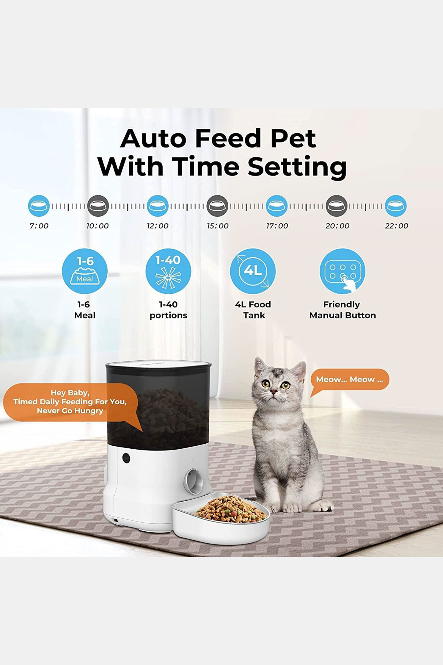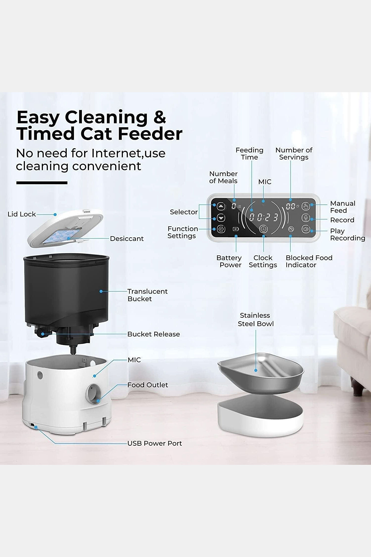 Akıllı Programlanabilir Mama Kabı 4 Litre Paslanmaz Çelik Hazne