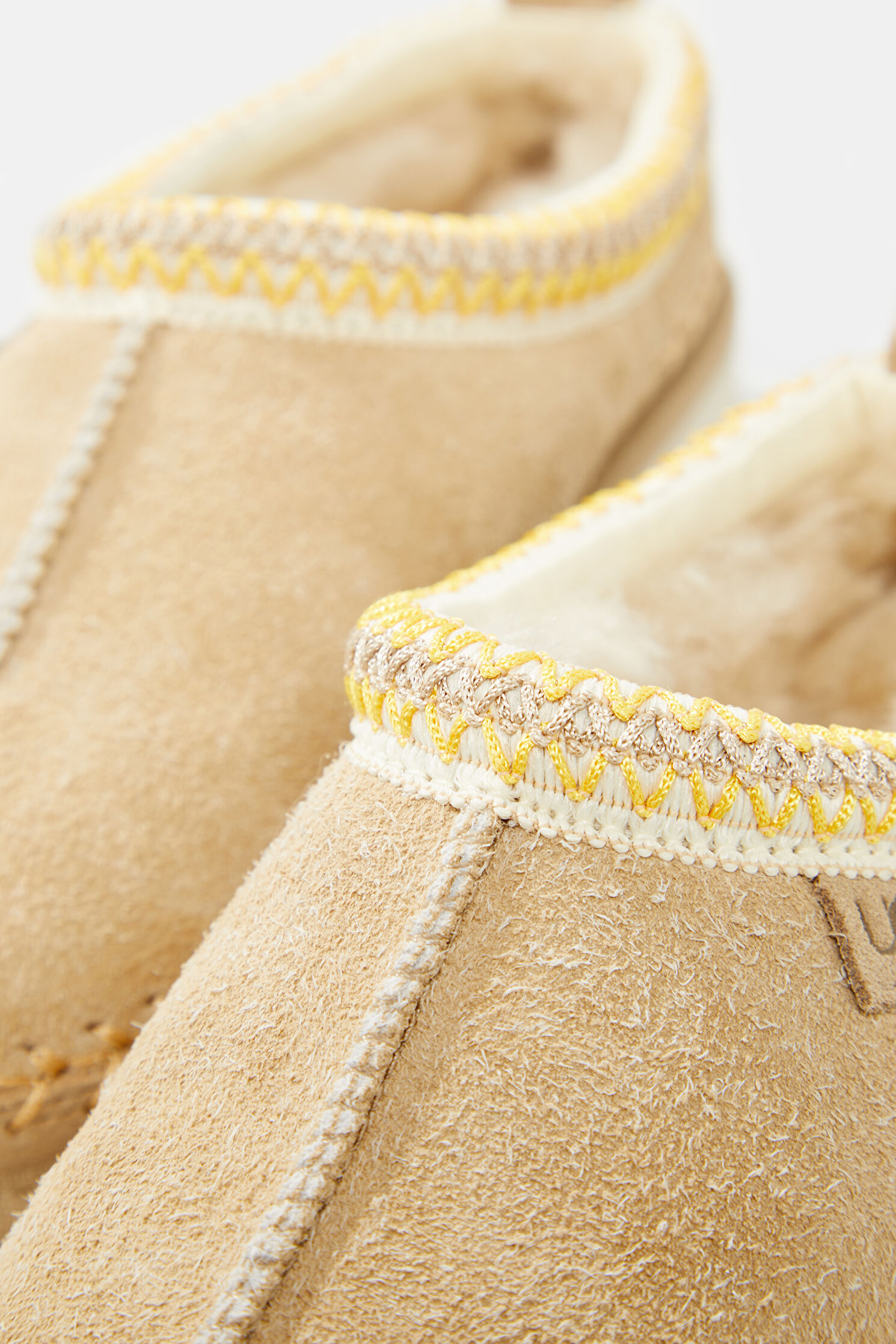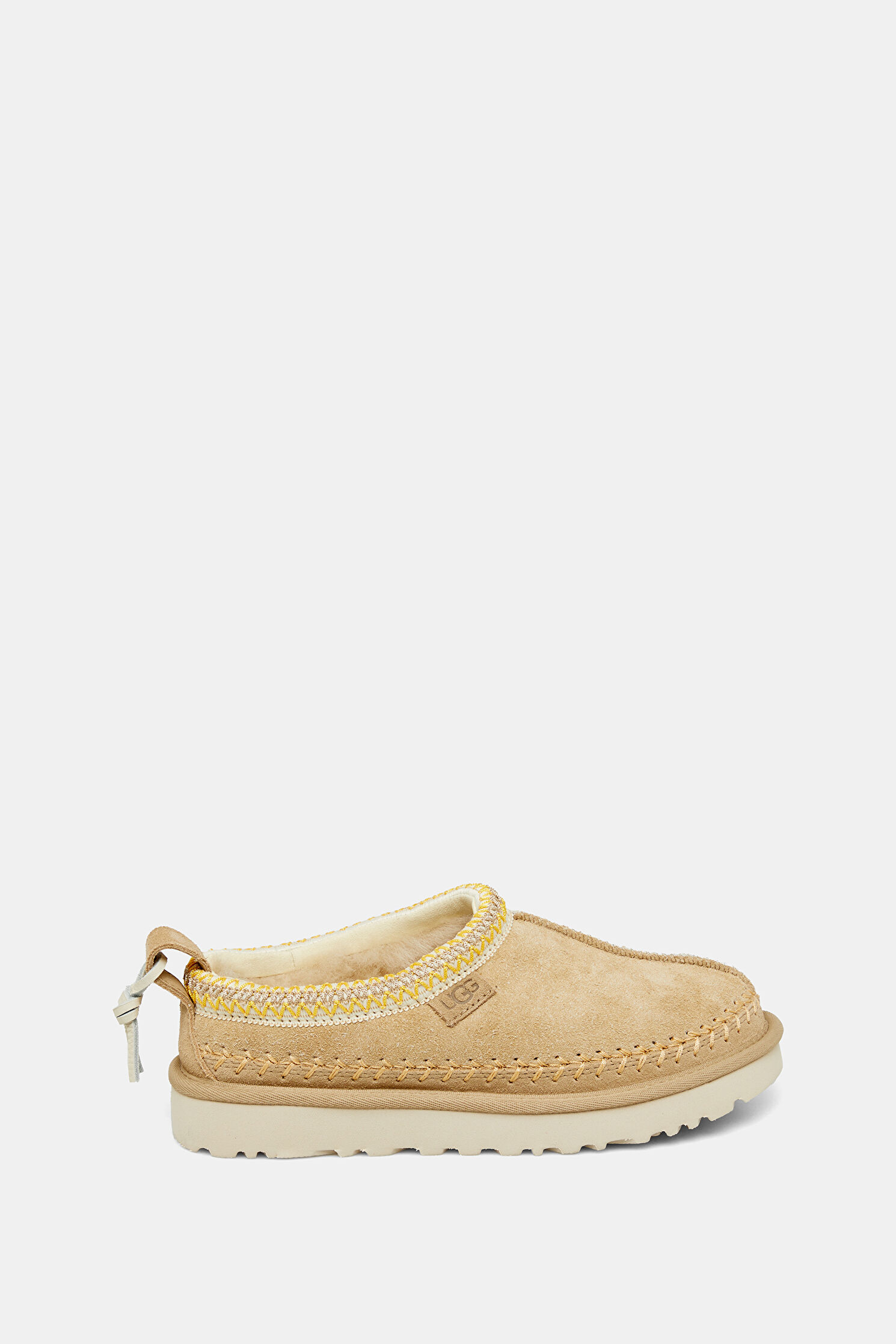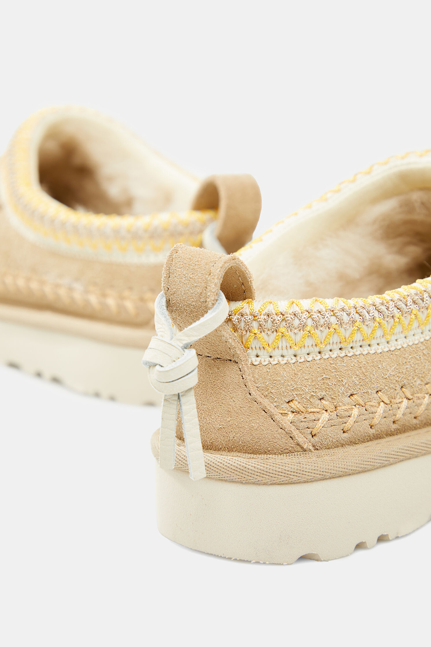 Süet çamurluk, Dekoratif dikiş, Arka çekme halkası, Deri püskül, Süet topuk desteği, %100 geri dönüştürülmüş polyester elyaftan yapılmış UGGbraid