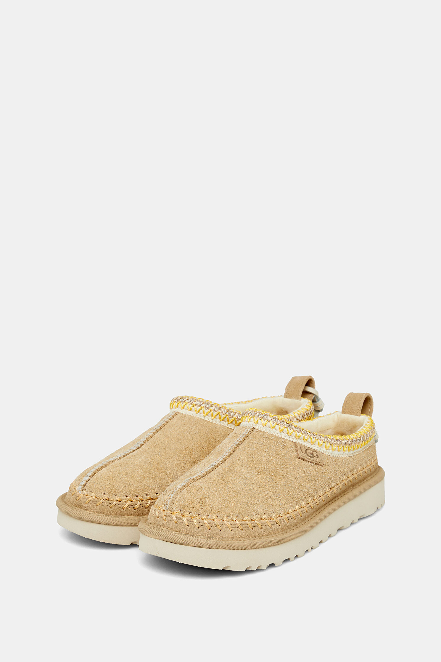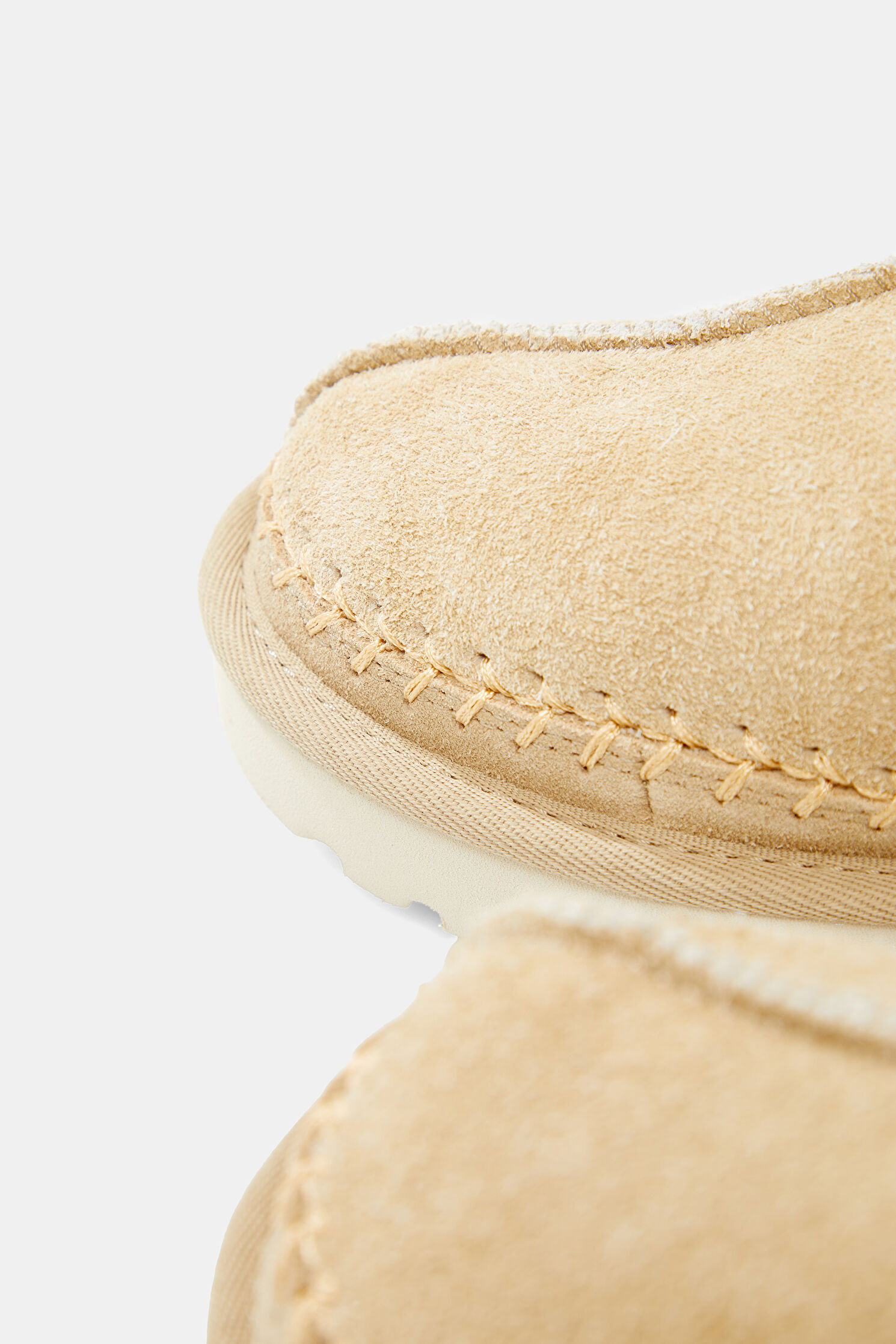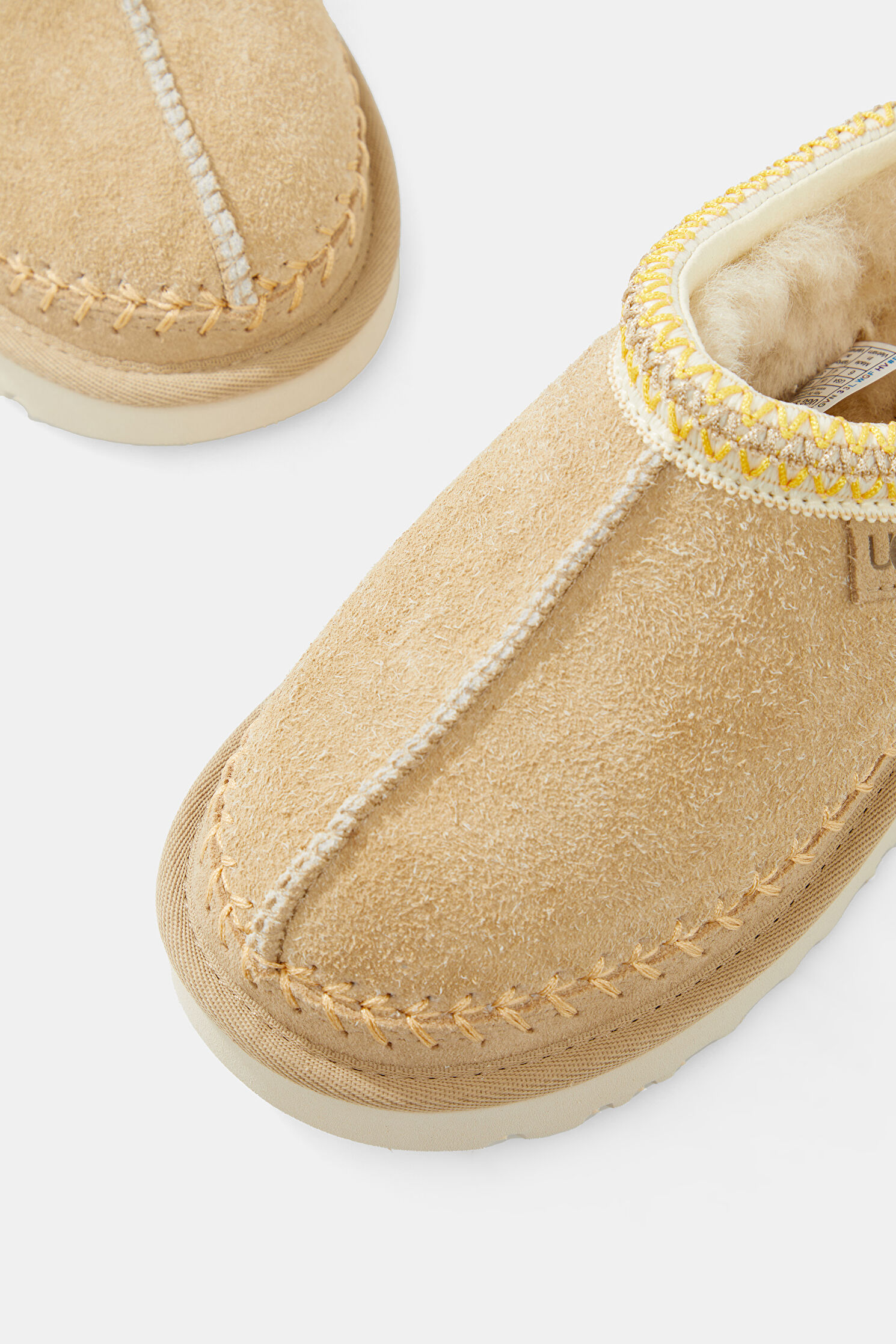 Süet çamurluk, Dekoratif dikiş, Arka çekme halkası, Deri püskül, Süet topuk desteği, %100 geri dönüştürülmüş polyester elyaftan yapılmış UGGbraid
