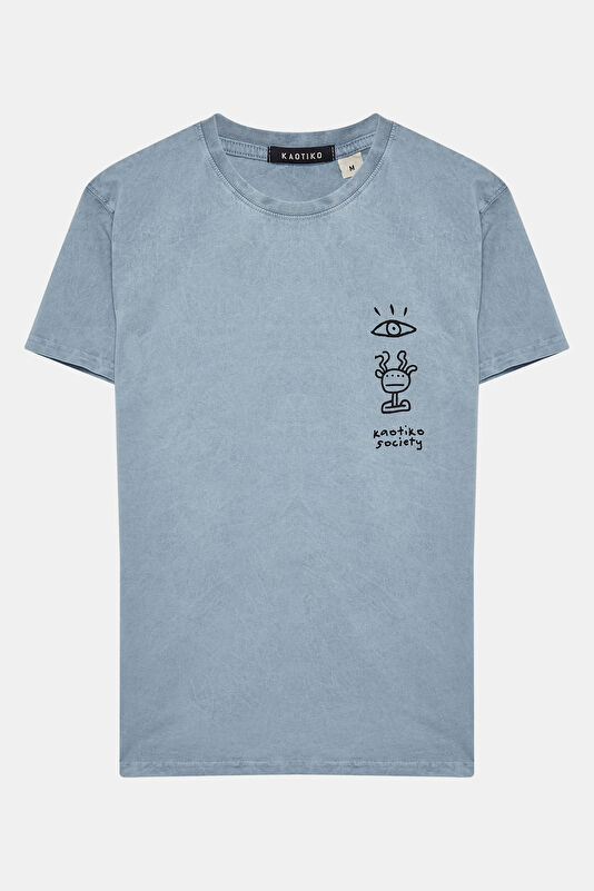 Relax Kalıp Açık Pembe Bisiklet Yaka Baskılı T-Shirt