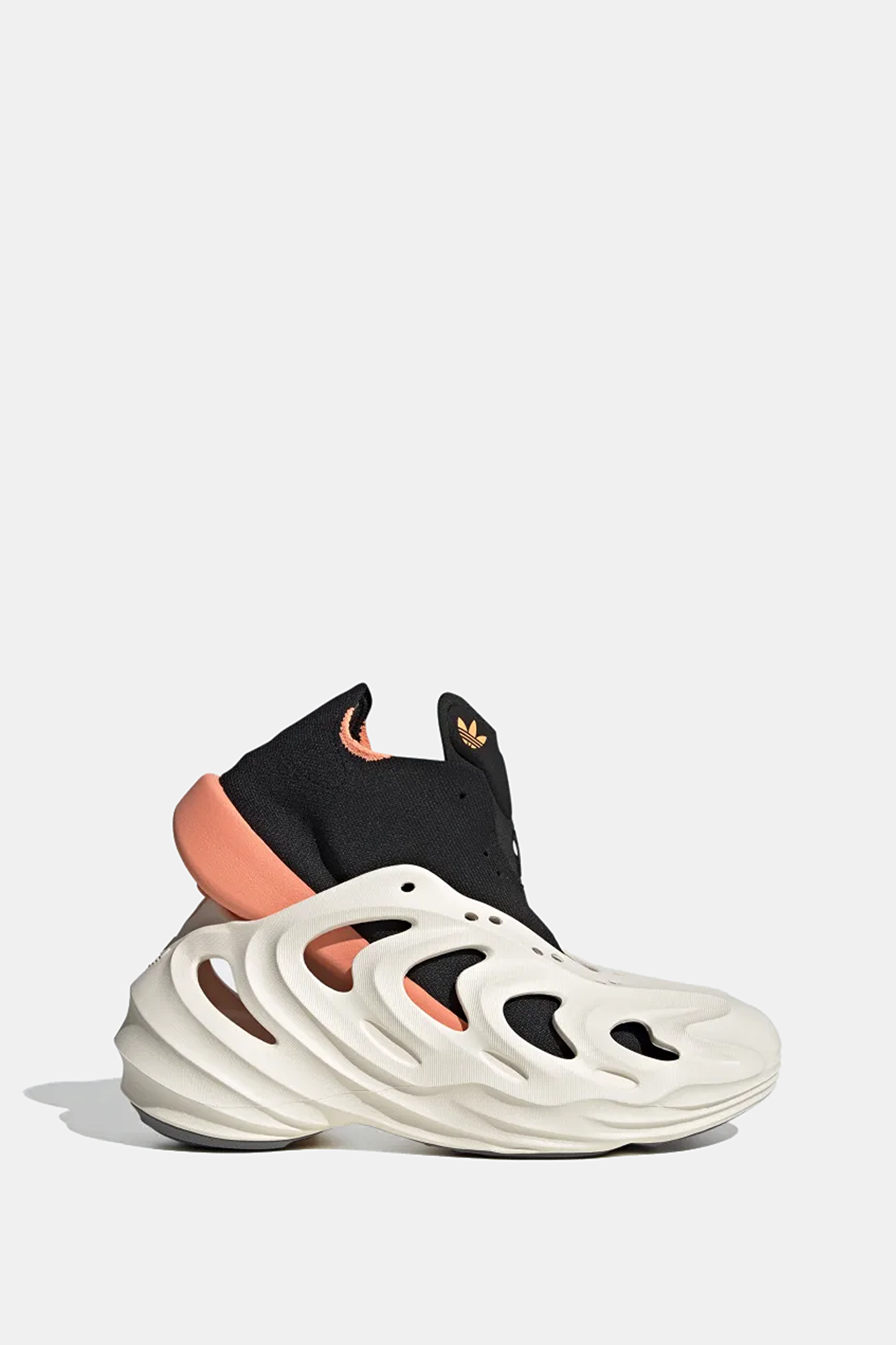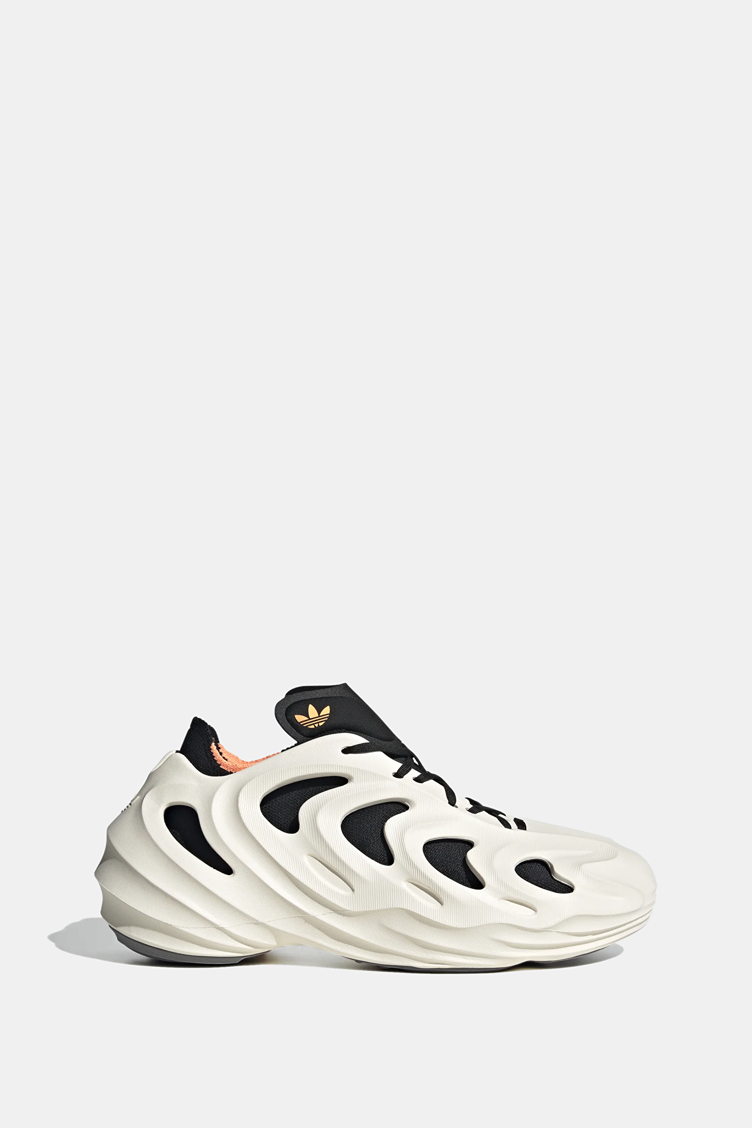 Beyaz, siyah renkli Adidas Adifom Q spor ayakkabı, ayağı çorap gibi saran iç yapısı ve Trefoil logo detayları ile öne çıkıyor. Adiplus yastıklama parçasına ve kumaş astara sahip olan bu model, bağcık detaylıdır.