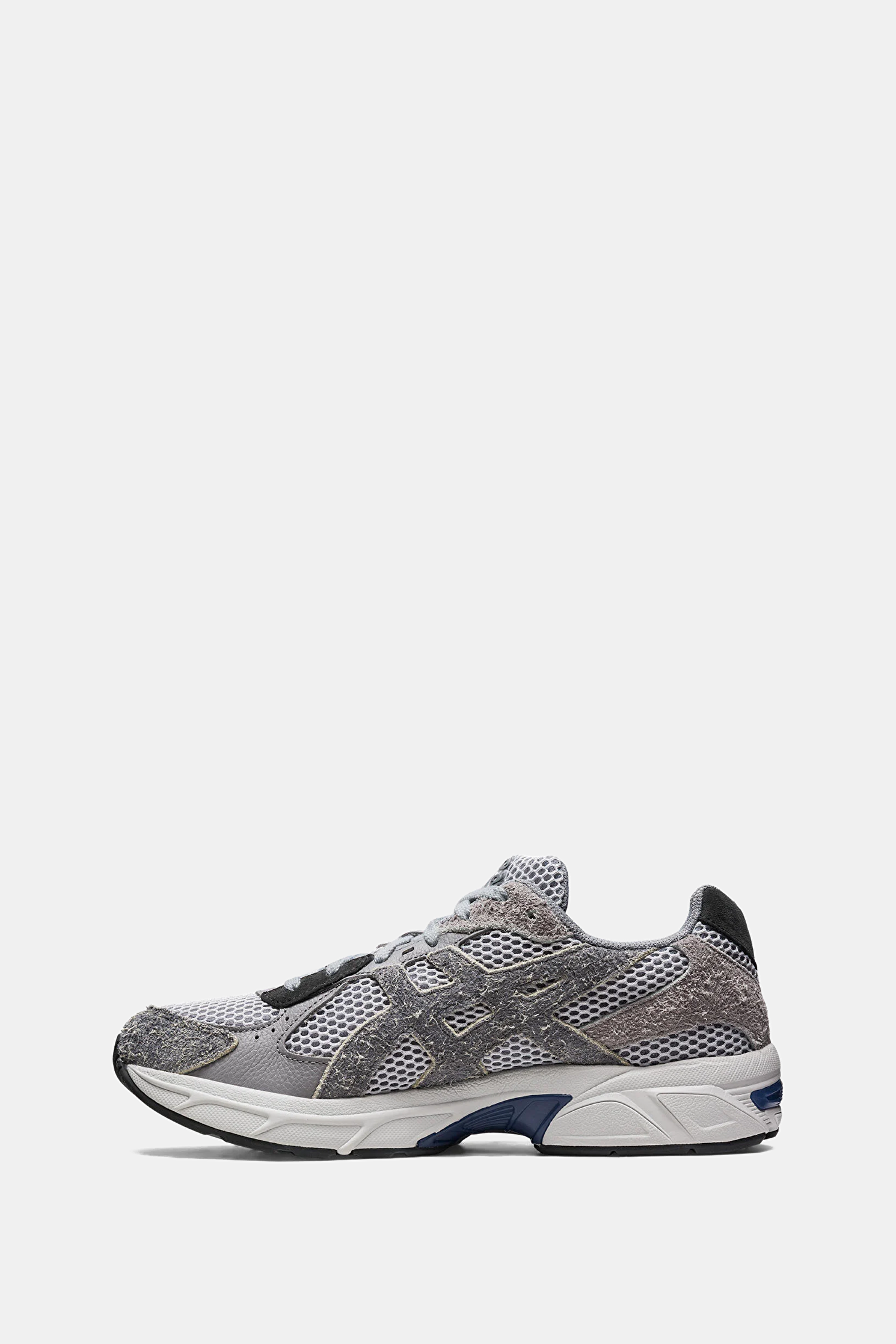 File sayası, ikonik süet bant detayları ve dış taban modeli ile dikkat çeken gri, siyah tonlu Asics spor ayakkabı, bağcıklıdır.