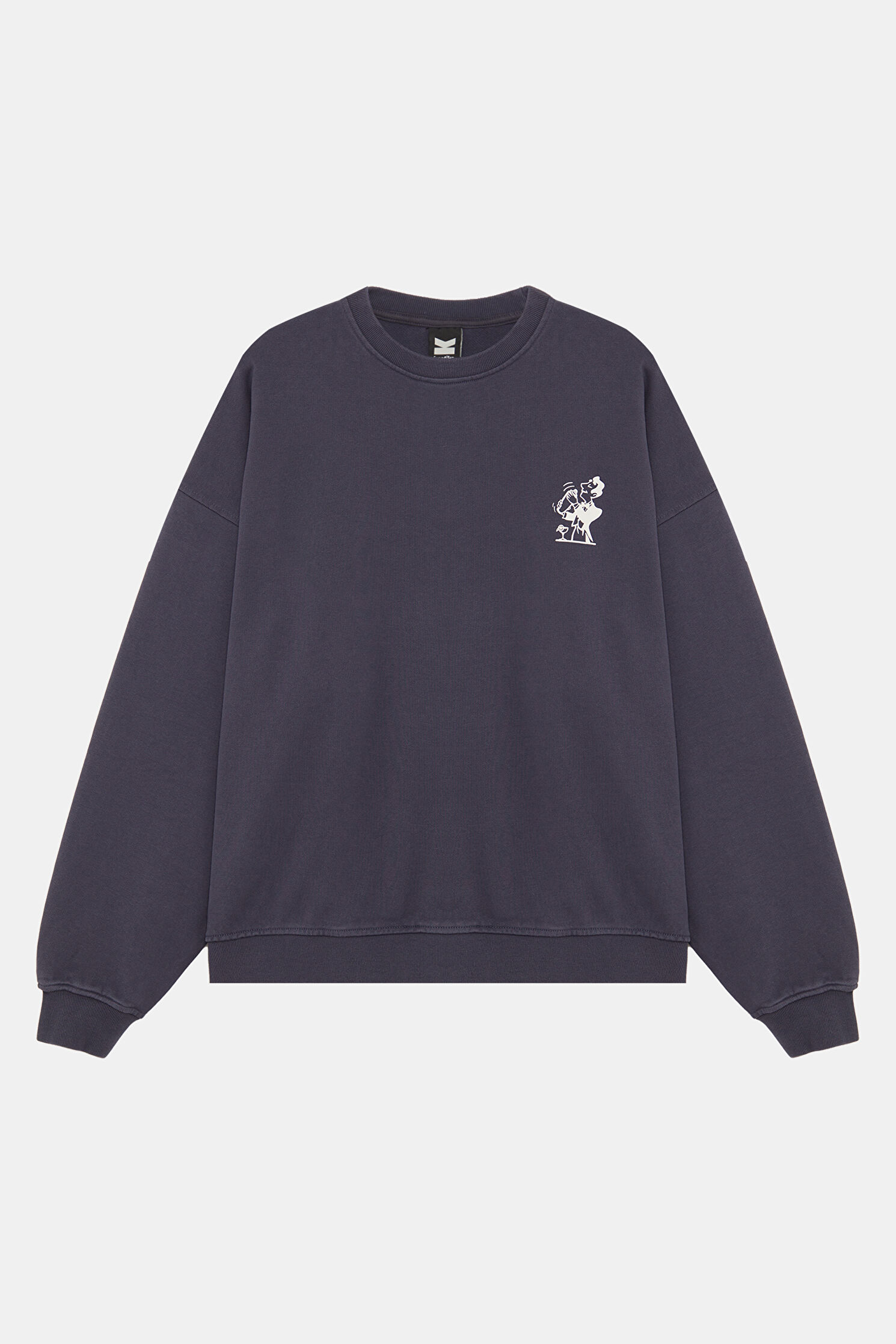 Lacivert Relax Kalıp Bisiklet Yaka Sweatshirt