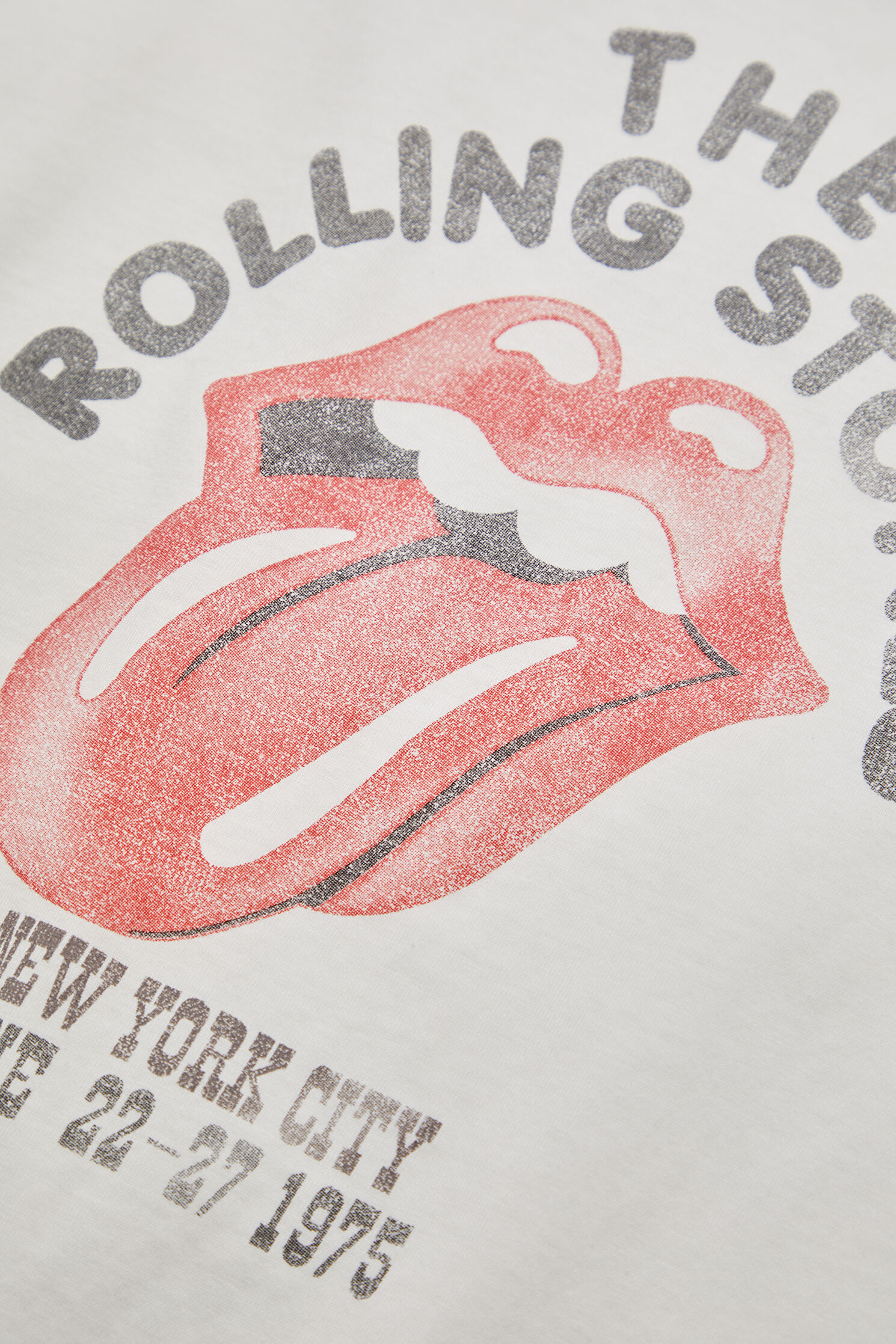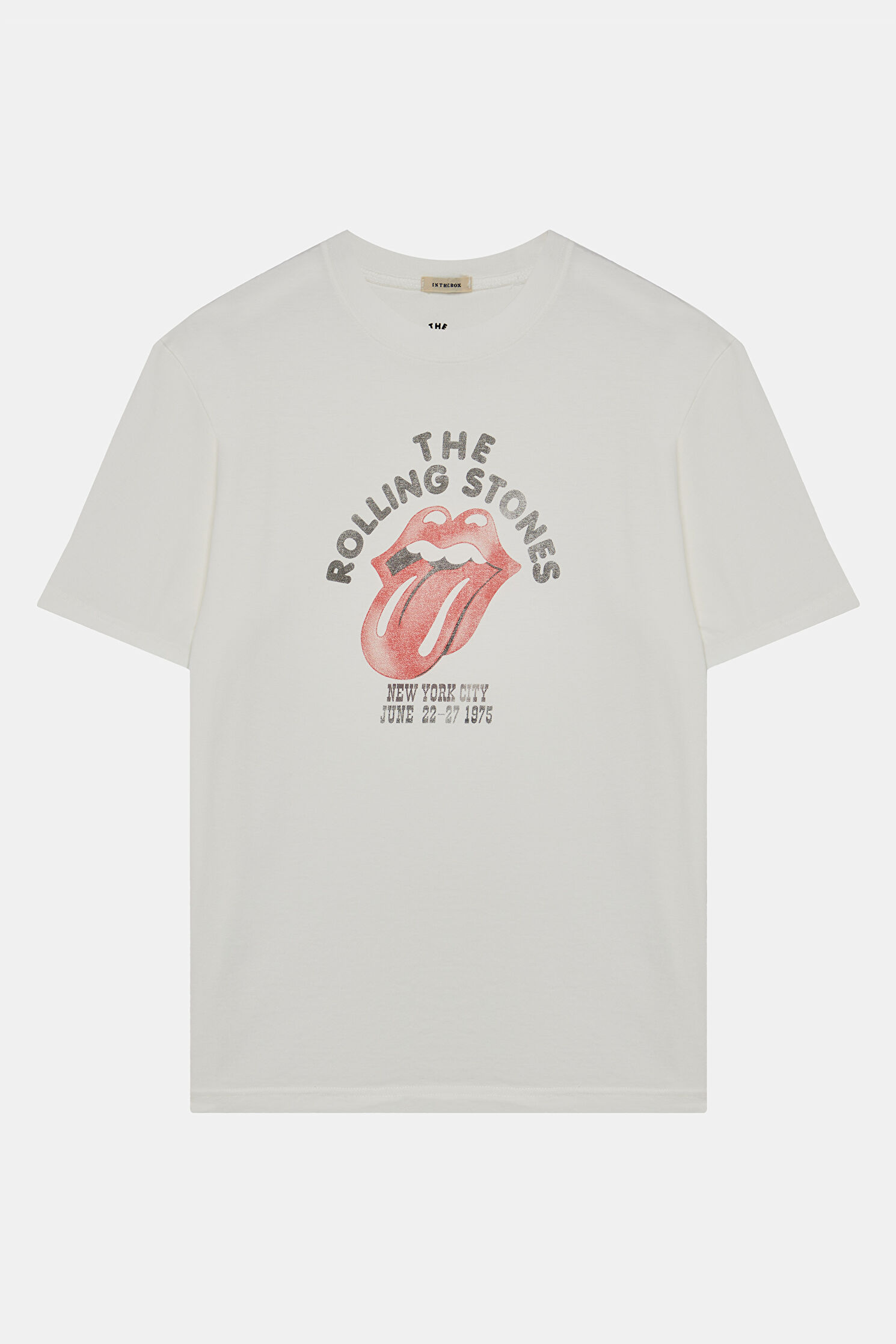 Beyaz Bisiklet Yaka Baskılı T-Shirt