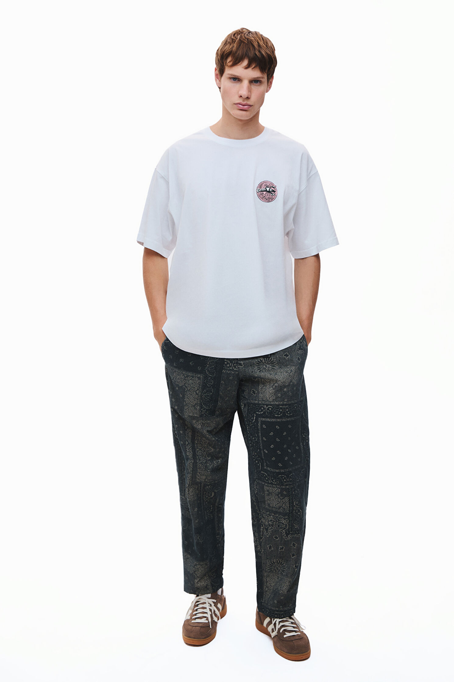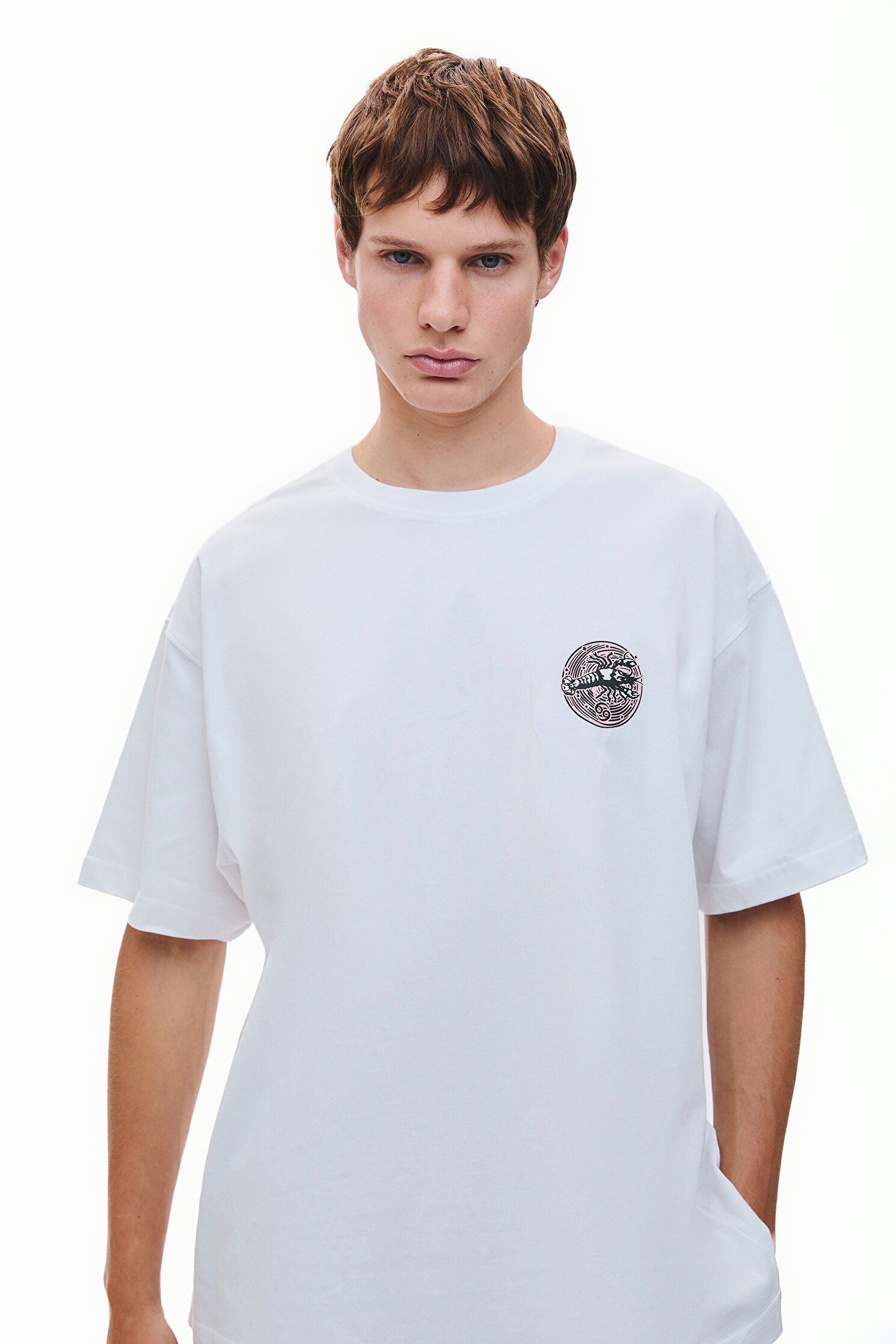 Cancer 2.0 Oversize Beyaz Bisiklet Yaka Baskılı T-Shirt