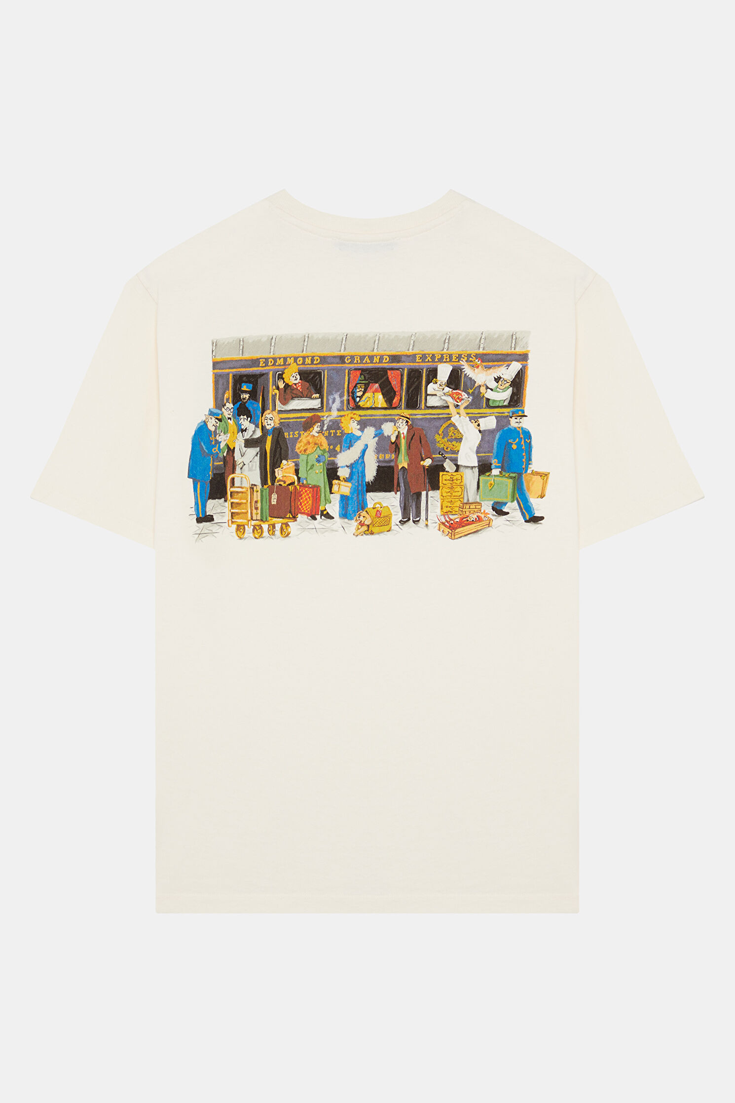 Relax Kalıp Ekru Bisiklet Yaka Baskılı T-Shirt