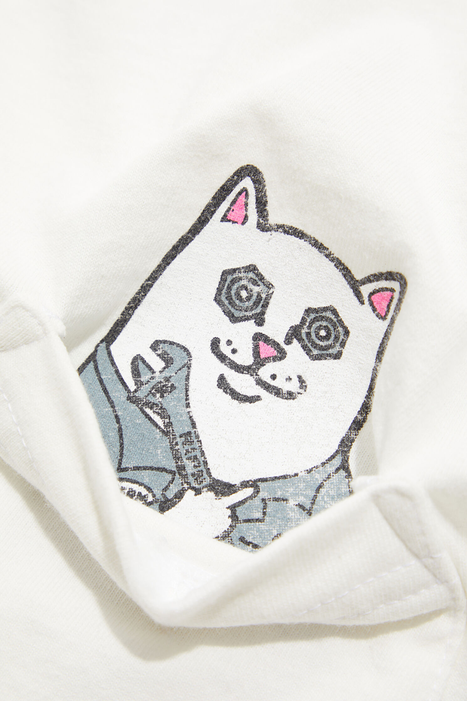 Relax Kalıp Ekru Bisiklet Yaka Baskılı T-Shirt