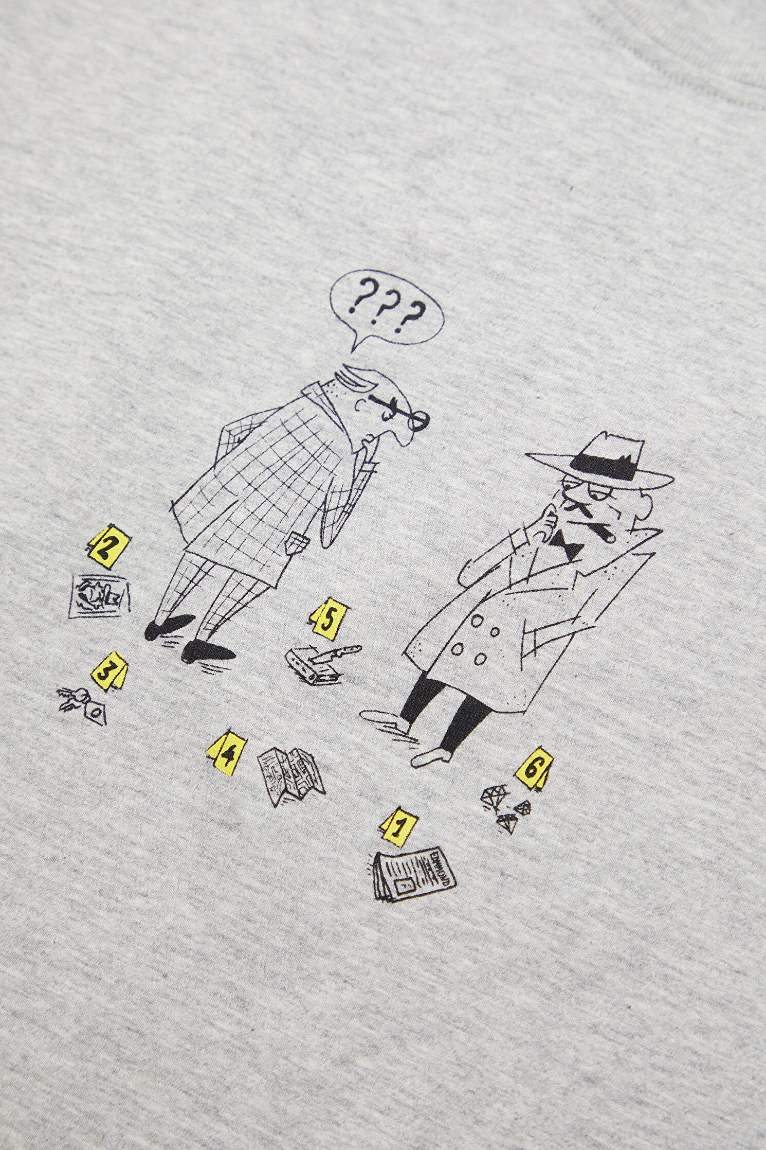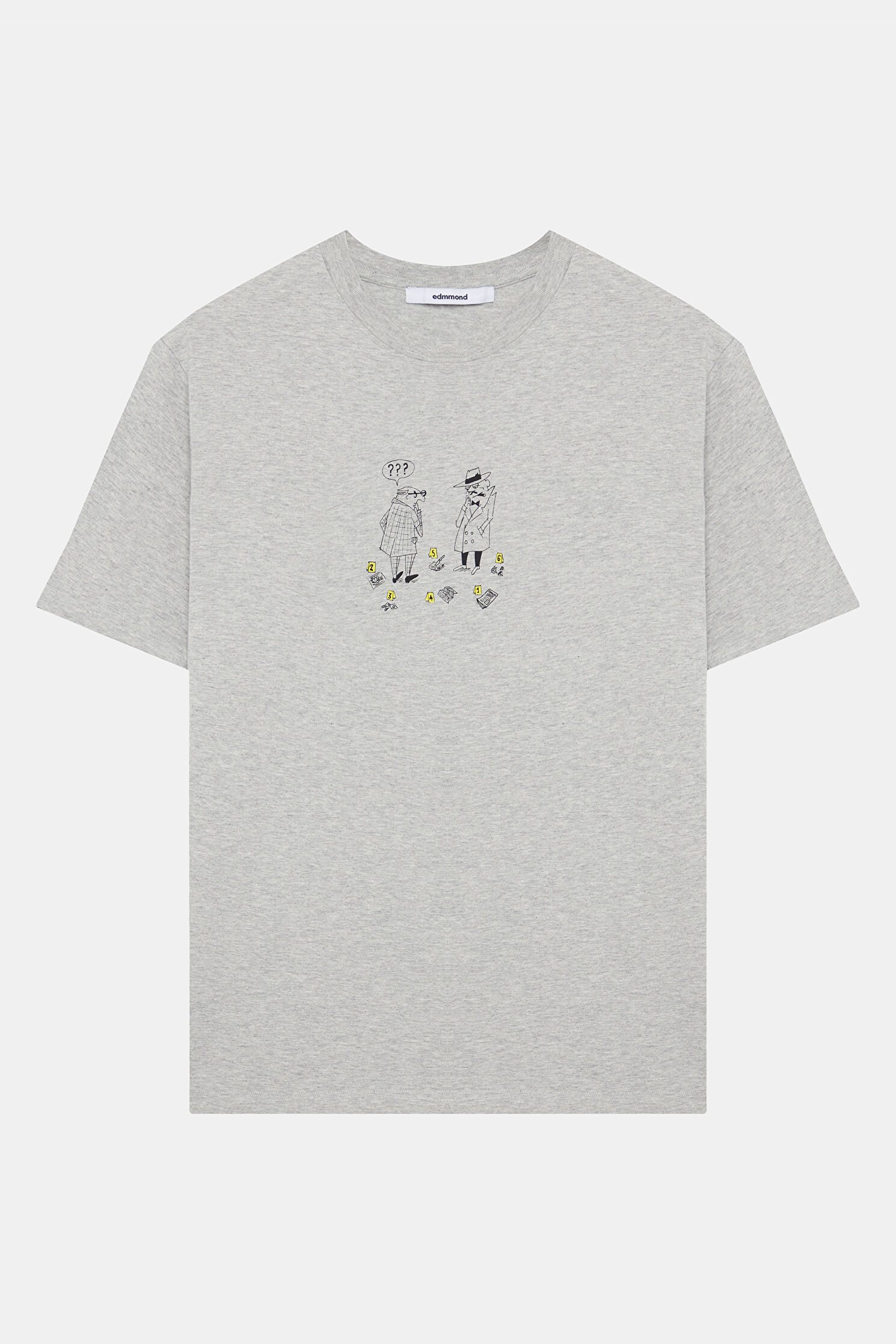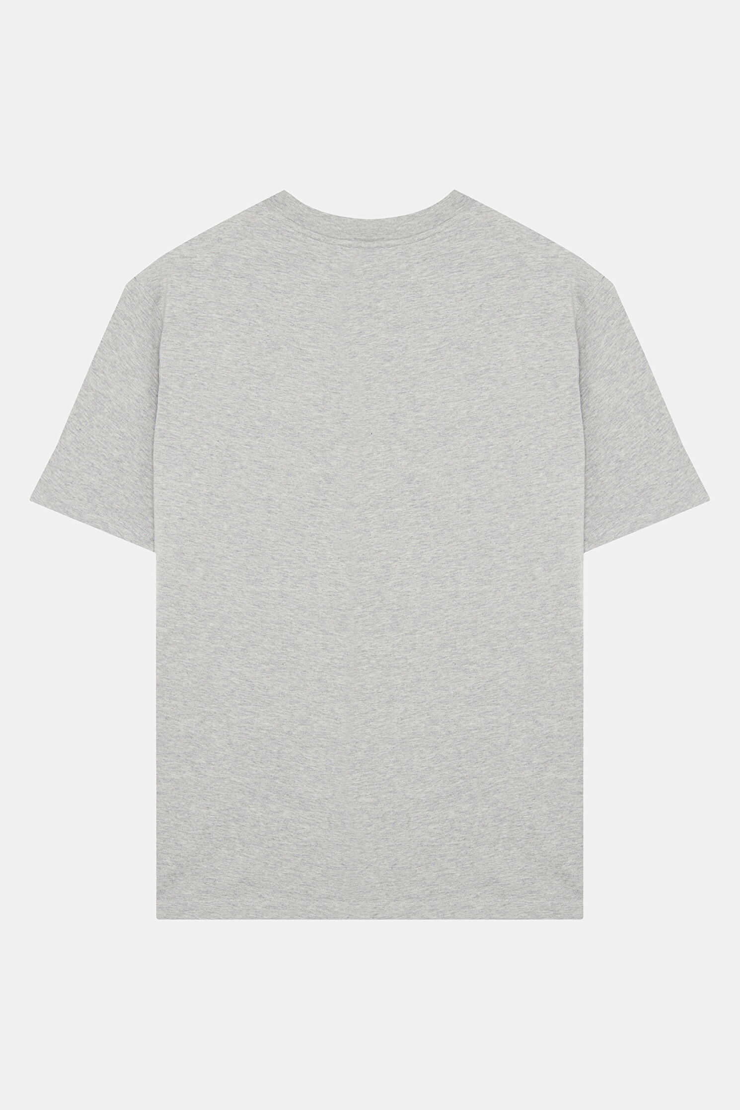 Relax Kalıp Gri Bisiklet Yaka Baskılı T-Shirt