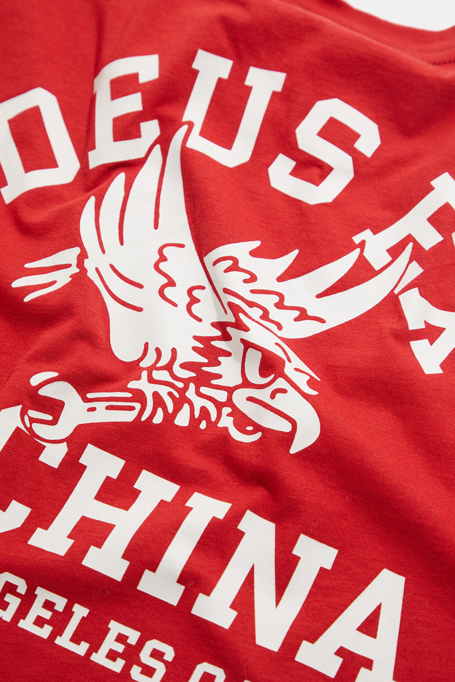 Relax Kalıp Kırmızı Bisiklet Yaka Baskılı T-Shirt