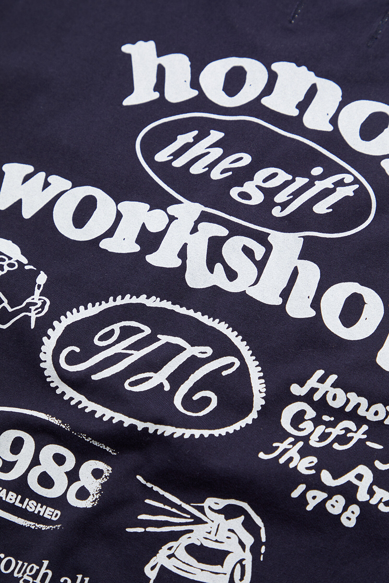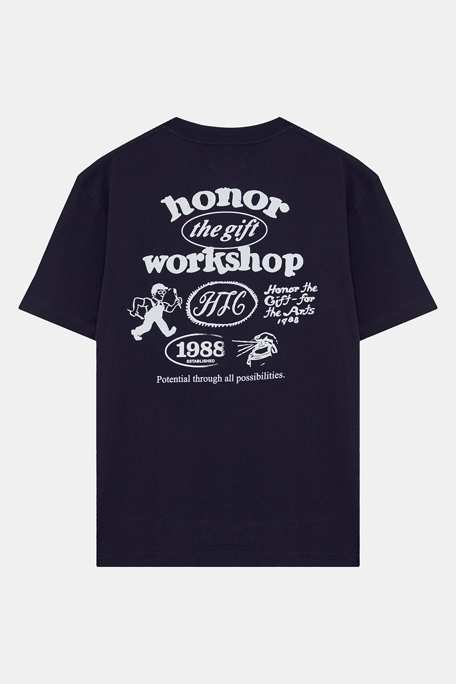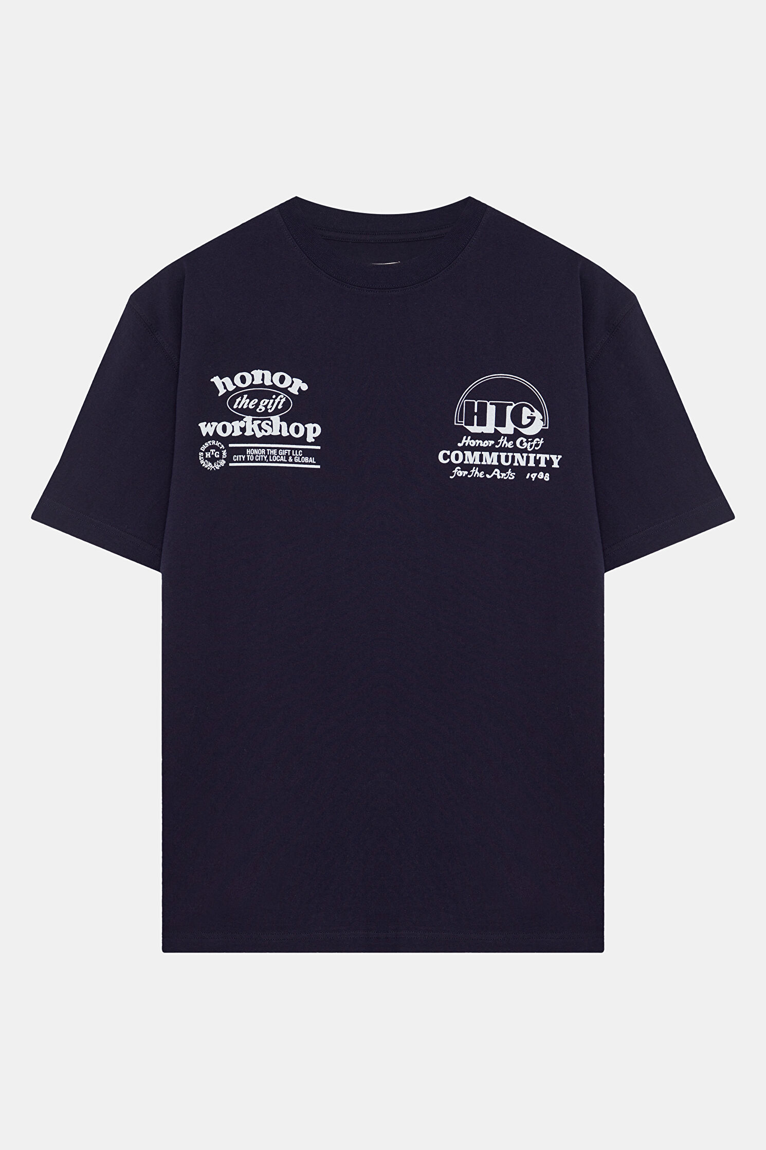 Relax Kalıp Lacivert Bisiklet Yaka Baskılı T-Shirt