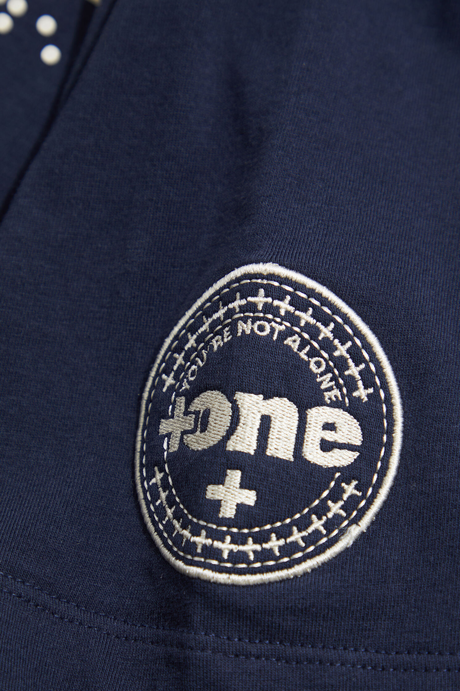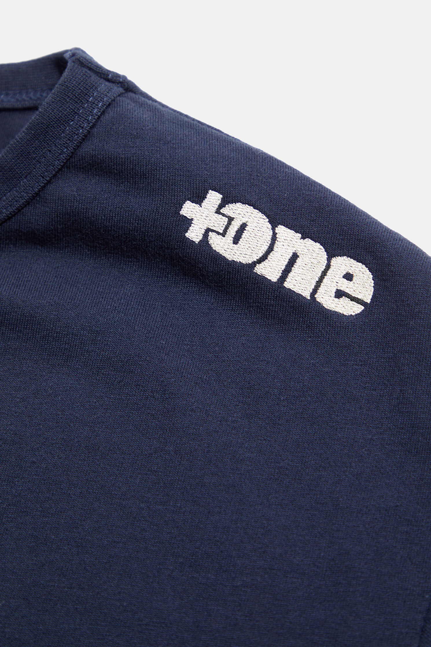 Relax Kalıp Lacivert Bisiklet Yaka Nakışlı T-Shirt