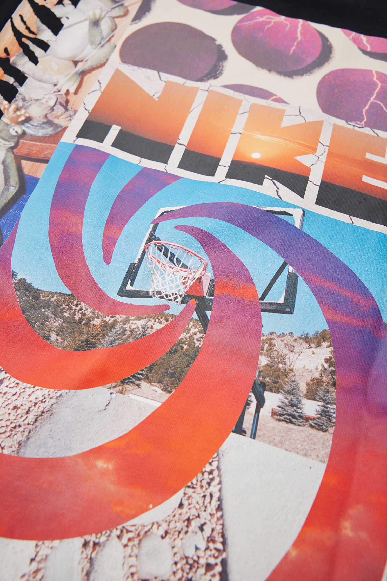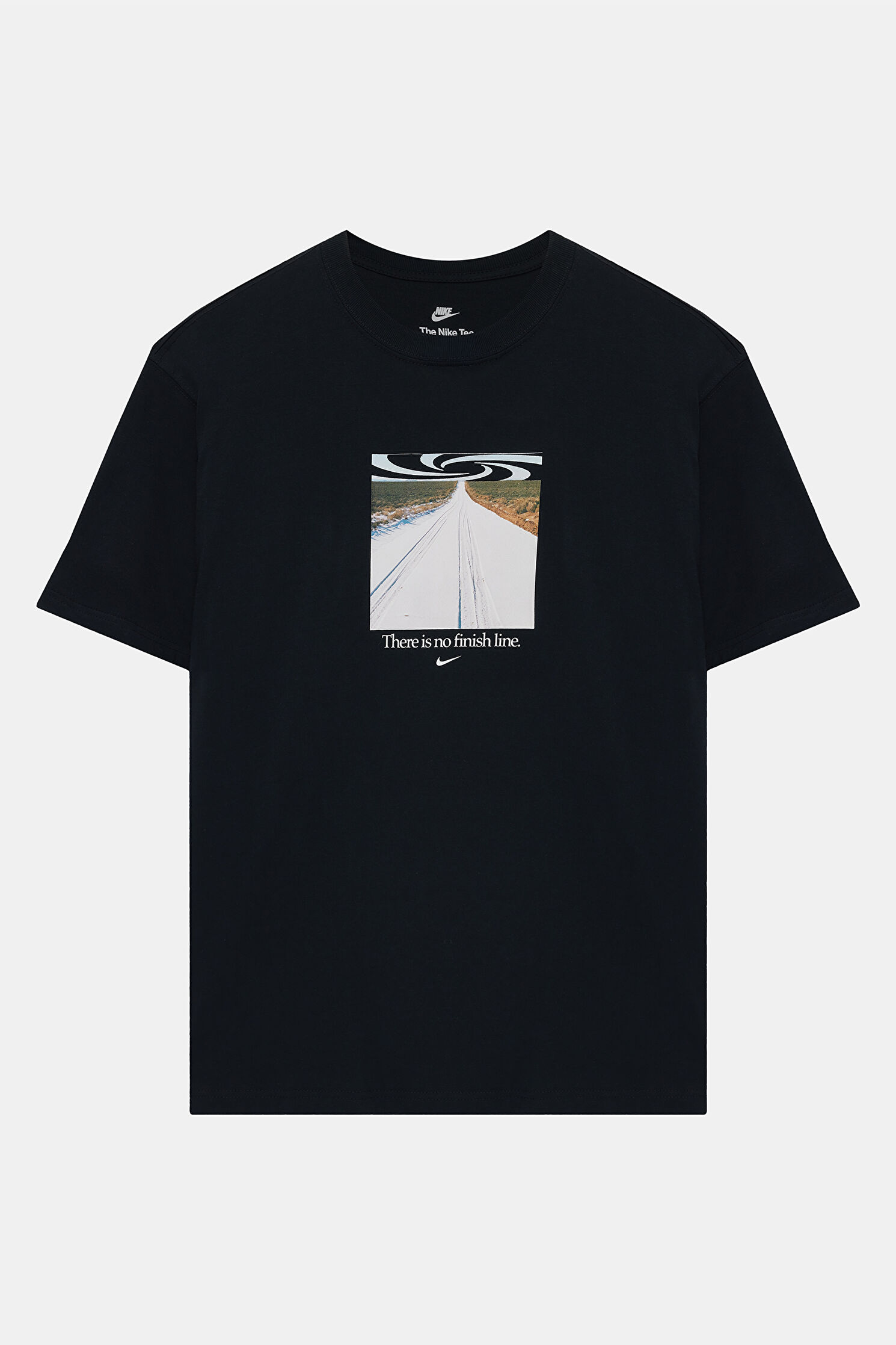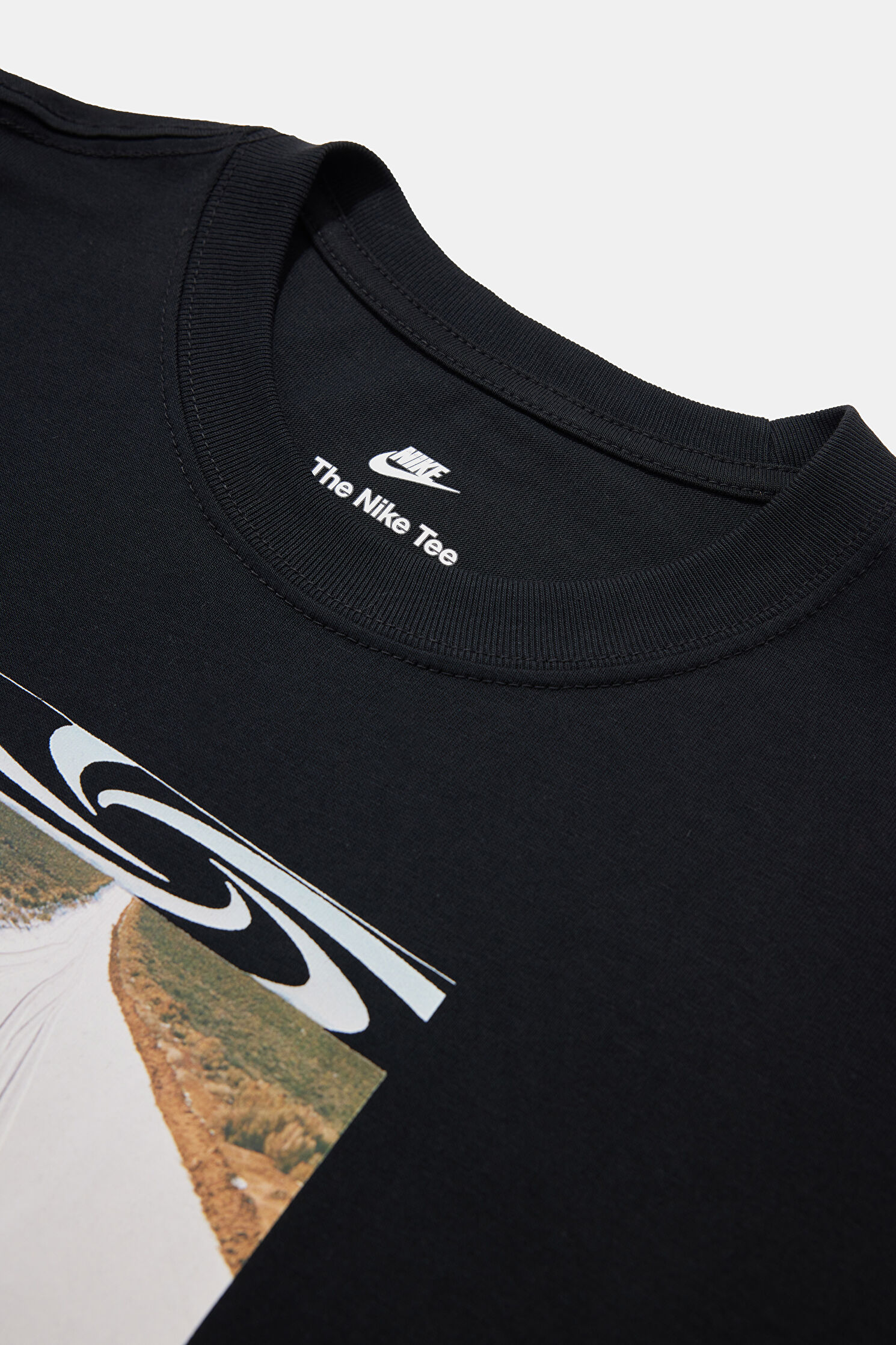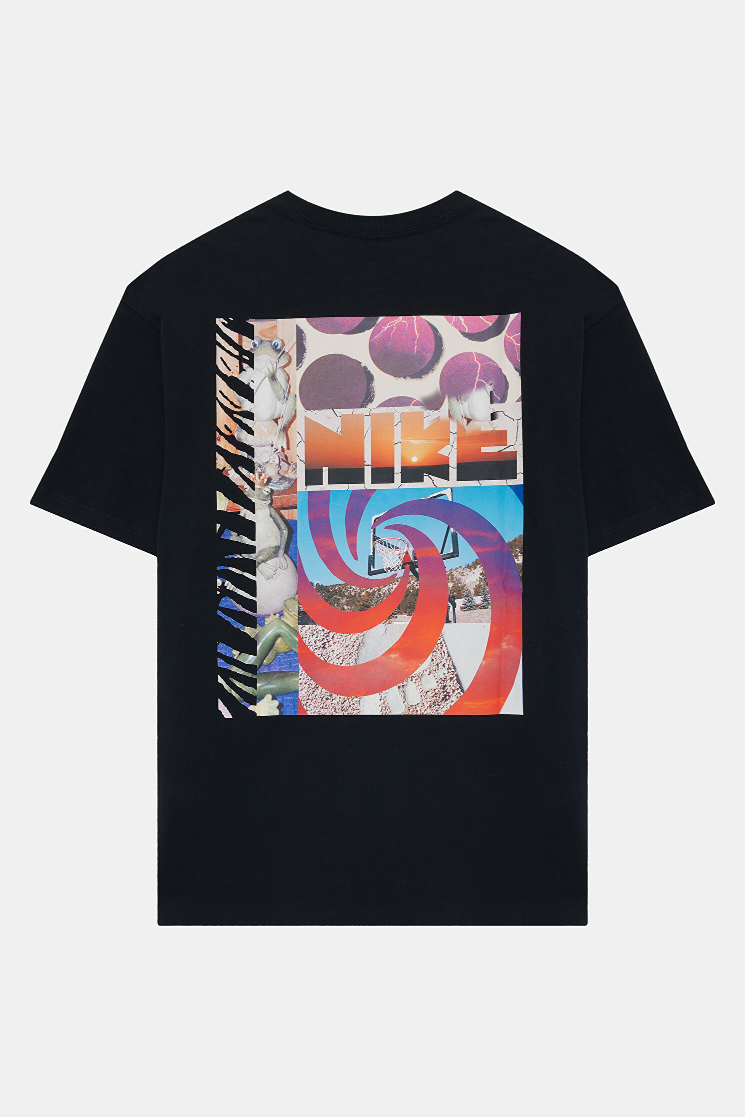 Relax Kalıp Siyah Bisiklet Yaka Baskılı T-Shirt