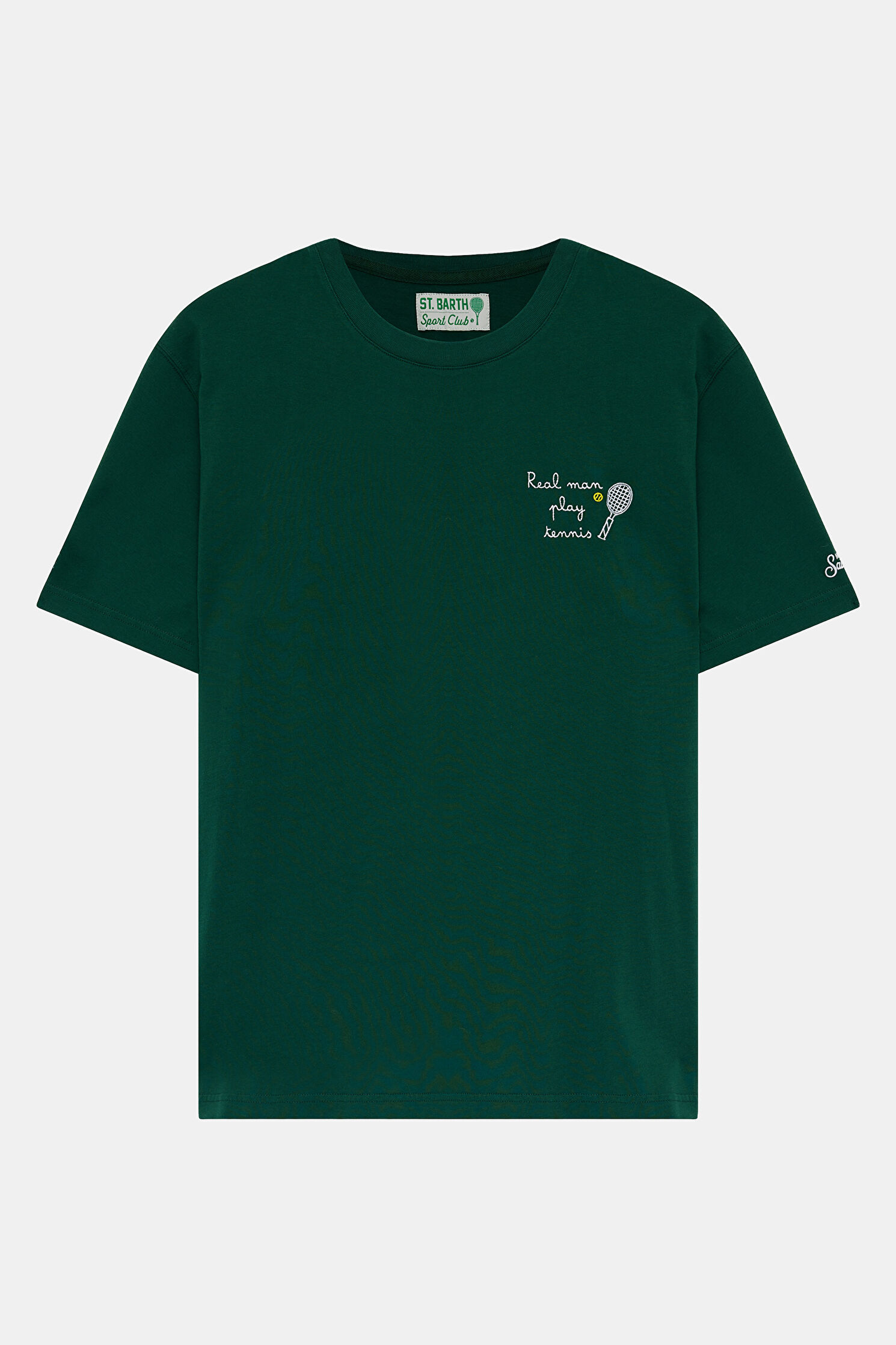 Relax Kalıp Yeşil Bisiklet Yaka Baskılı T-Shirt