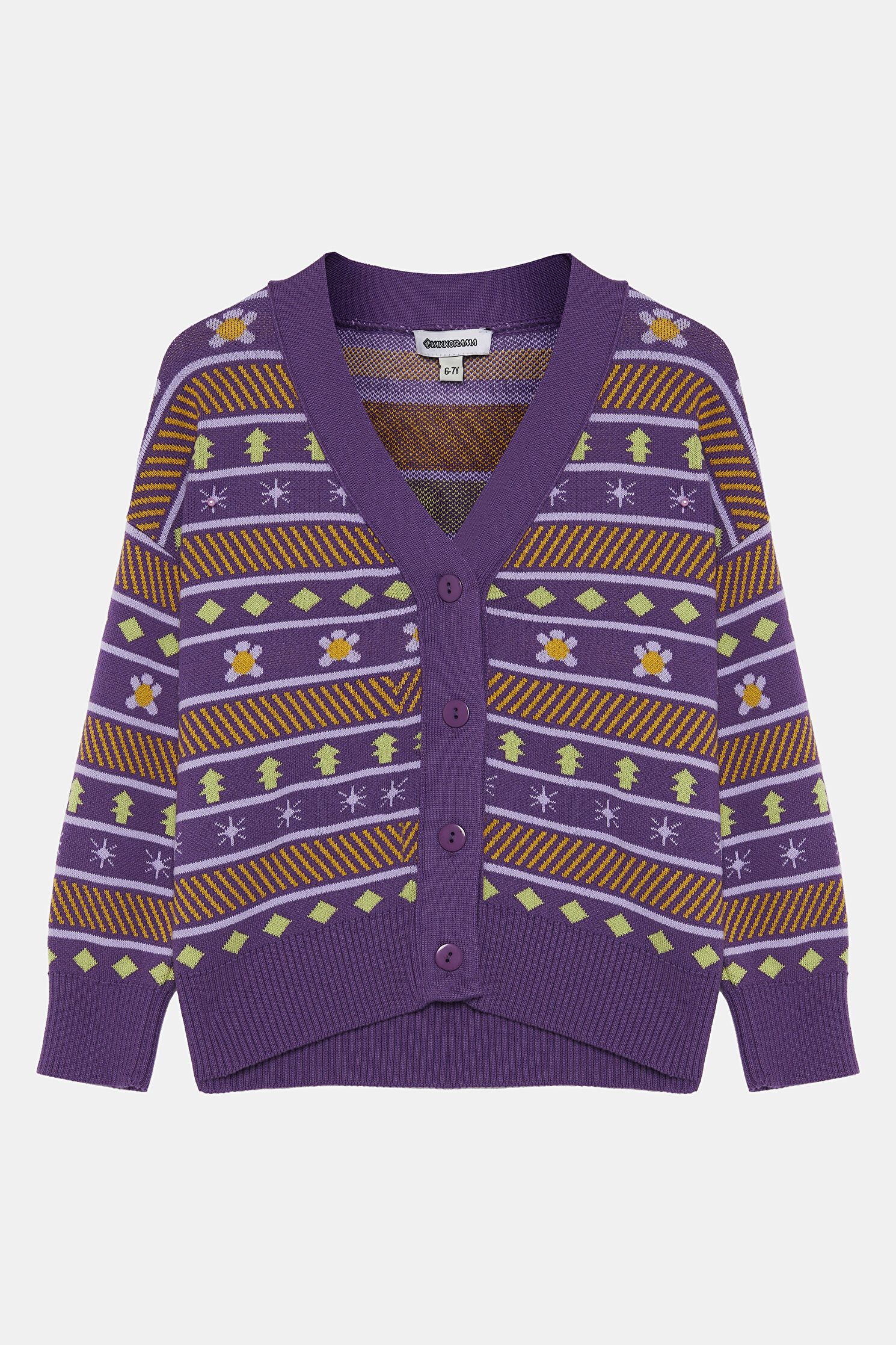 Çok Renkli Desenli Triko Hırka