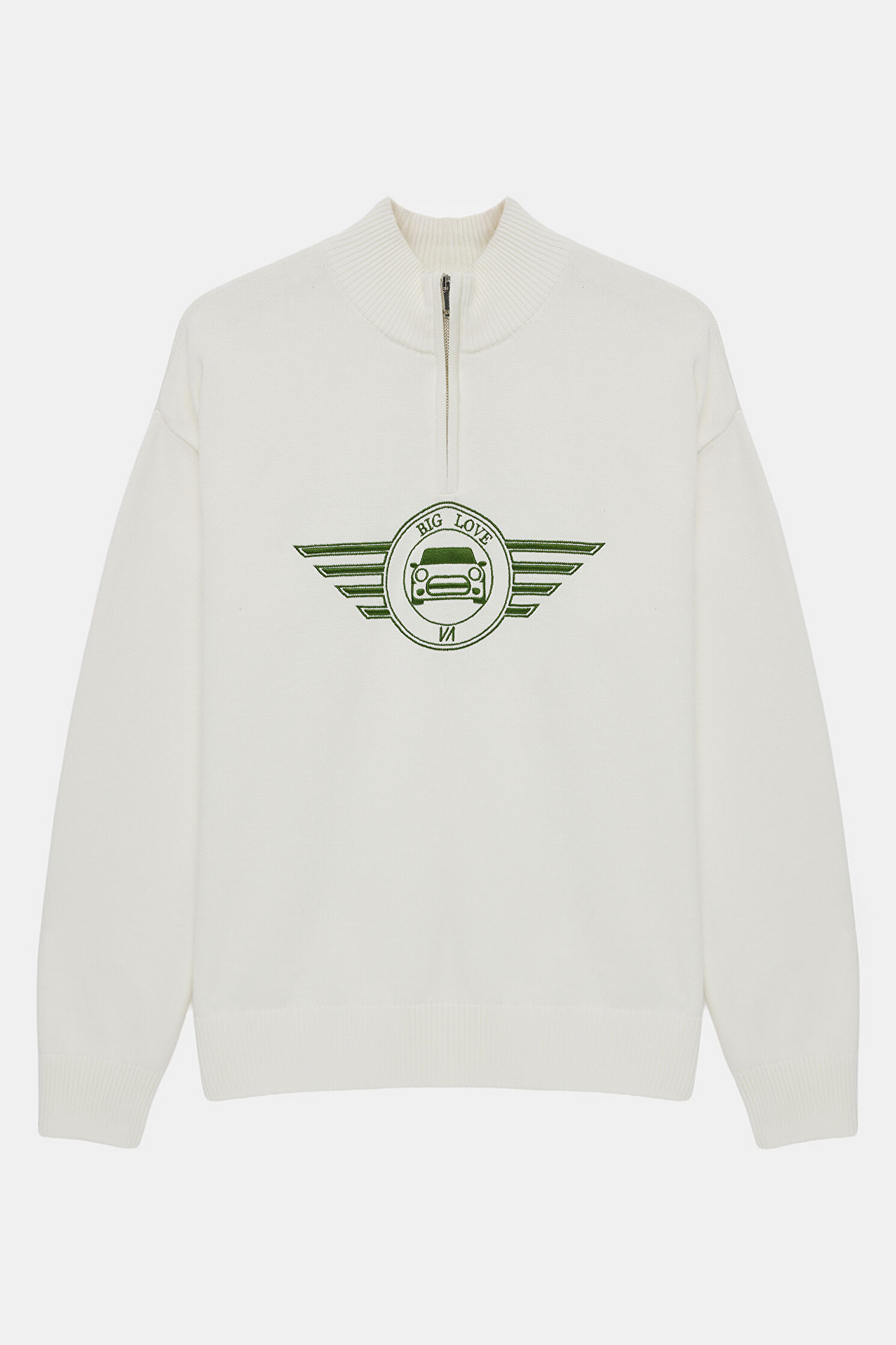 Ekru Nakışlı Triko Kazak