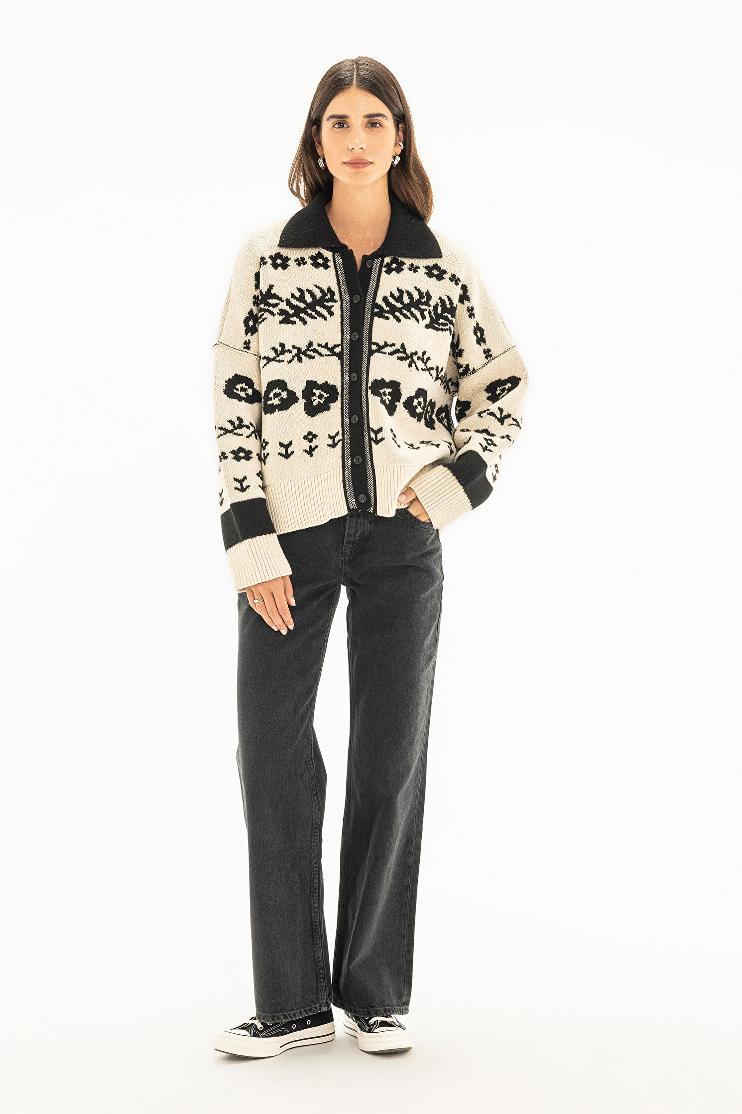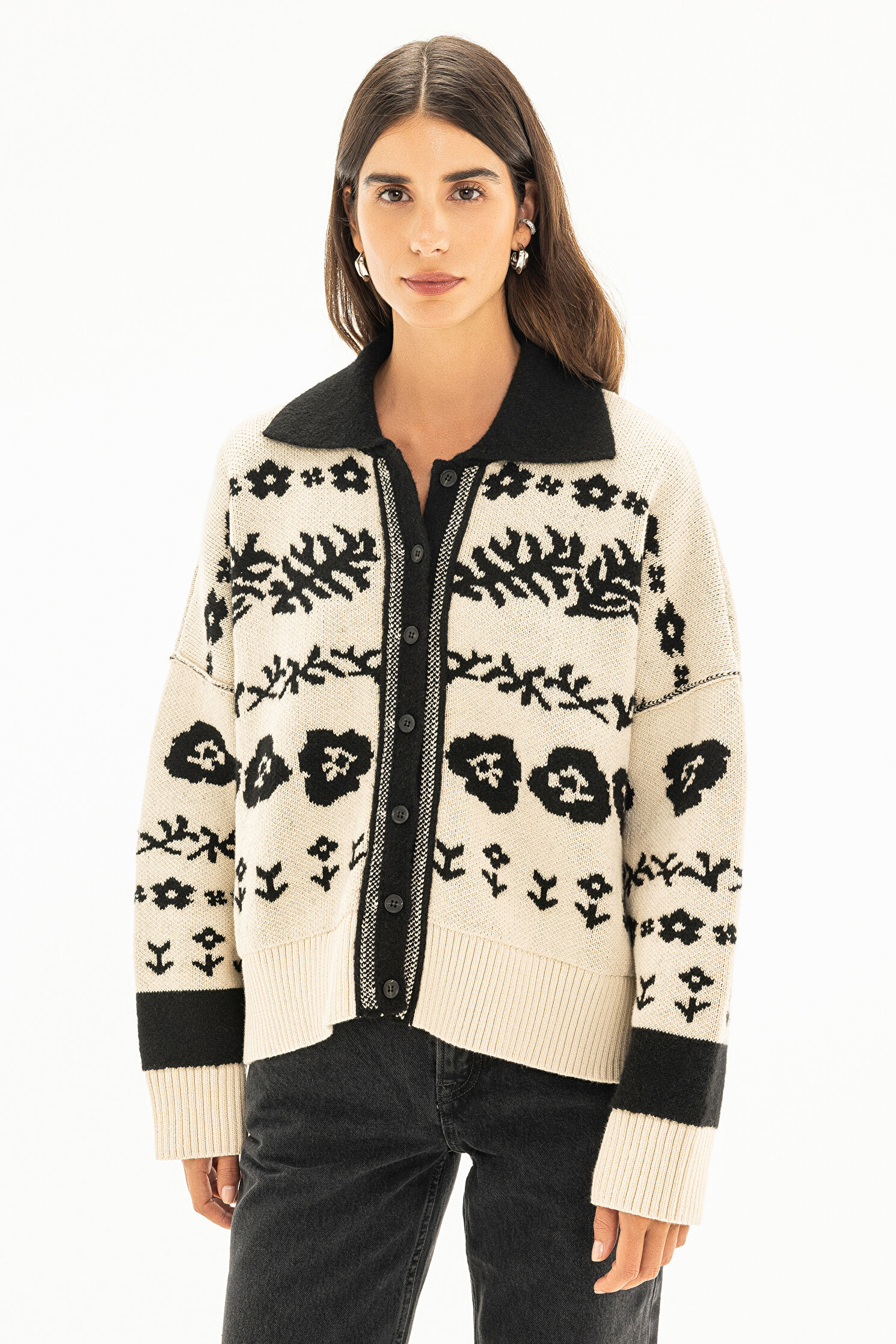 Siyah Desenli Hırka